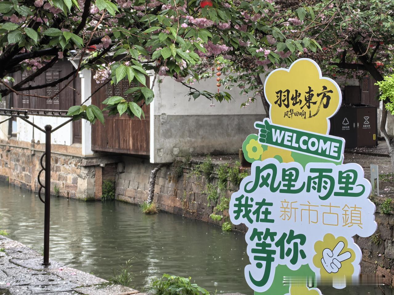 新市古镇,不一样水乡古镇, 春日细雨中漫步, 粉色晚樱遇见迷人的桐花, 心中古镇