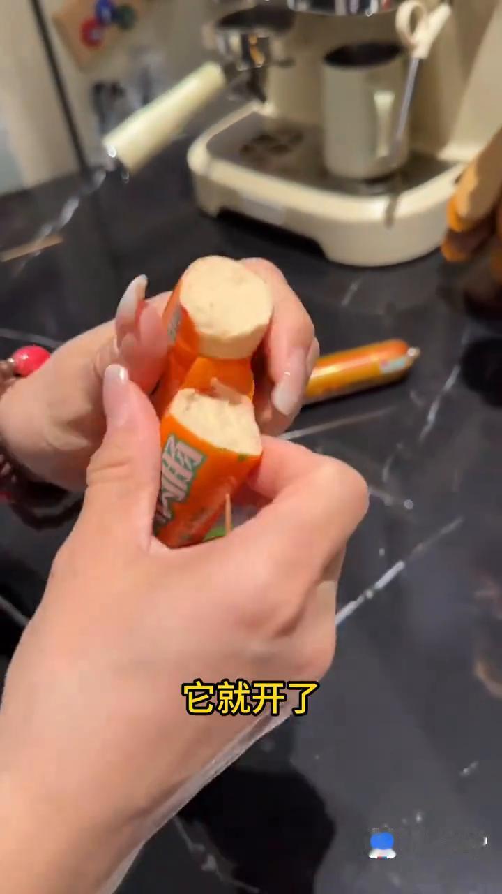 ·第九个:以后开火腿肠,你就像我这样给它对折后,找一根牙签扎一下就开了,这多轻松。
