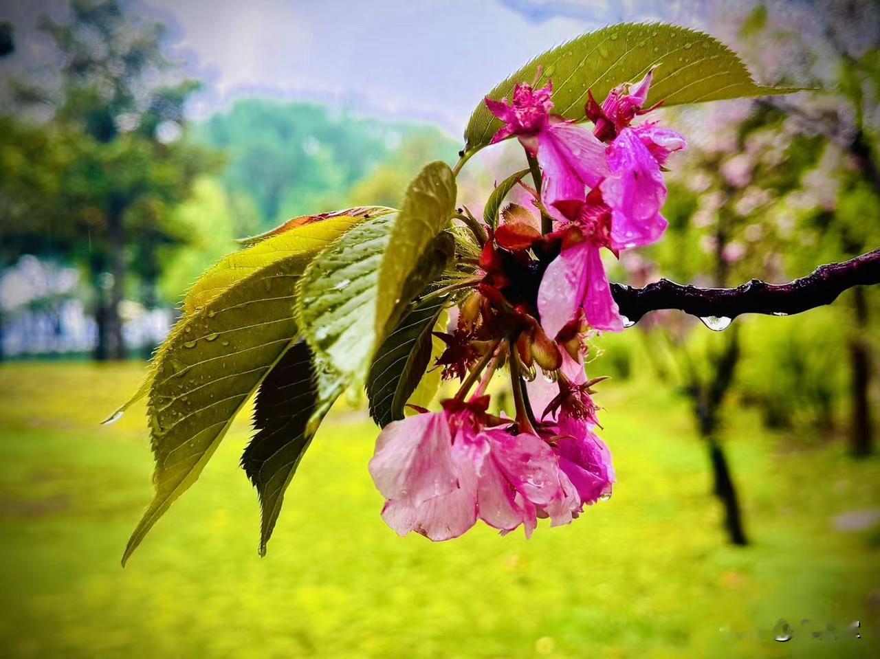 被雨淋透的山樱花
