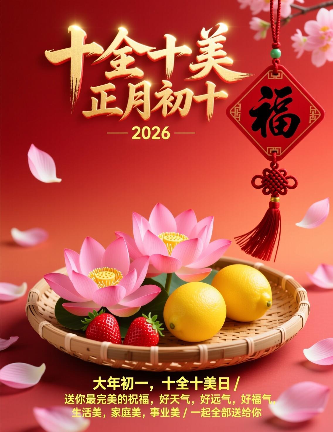 正月初十,送您十全十美的马年运势!🐎 健健康康驮着您,红红火火围着您,顺顺当当护着您,马到成功跟着您。财源滚滚追着您,事业腾飞带着您,家庭美满伴着您,笑口常开守着您。平平安安陪着您,万事胜意属于您!