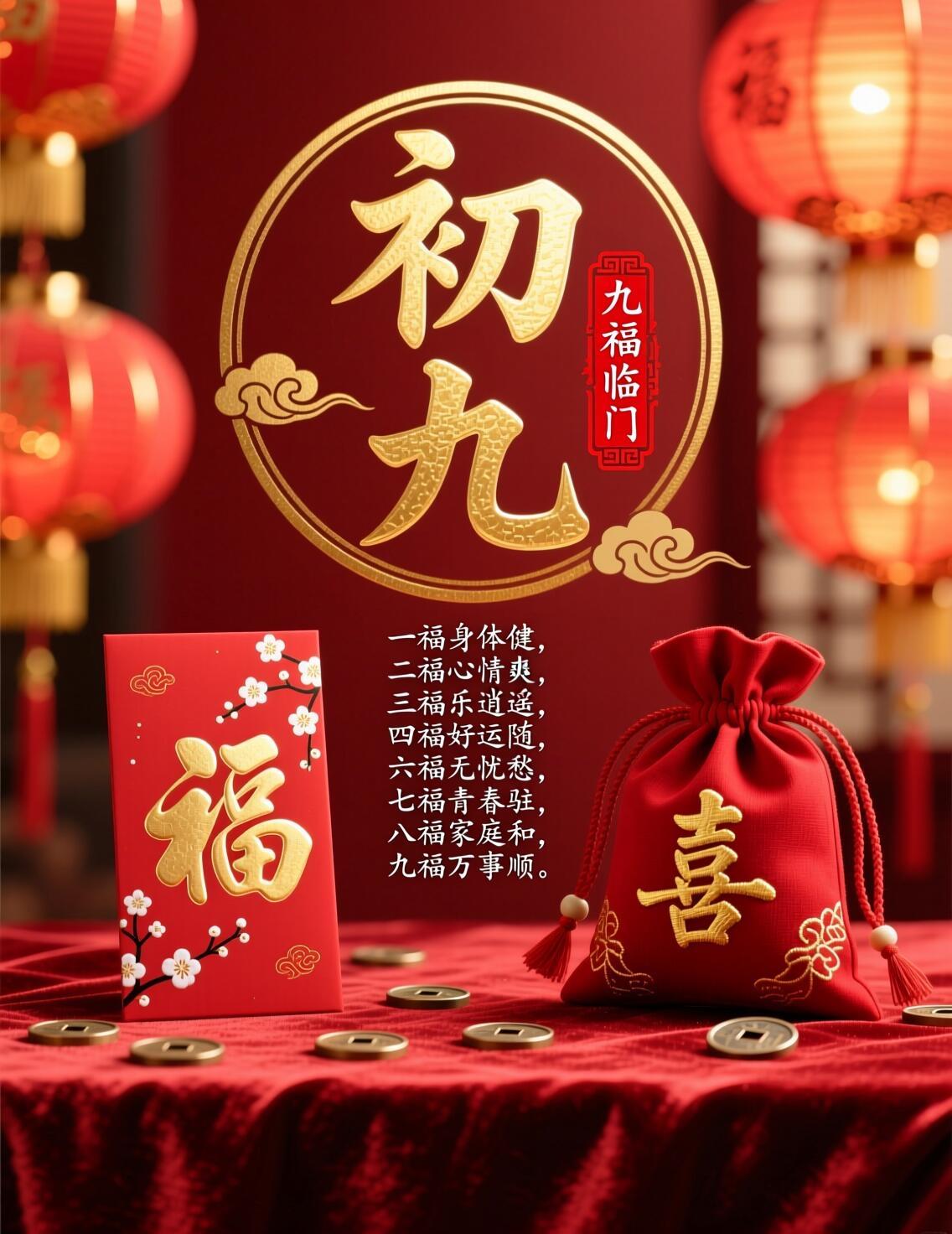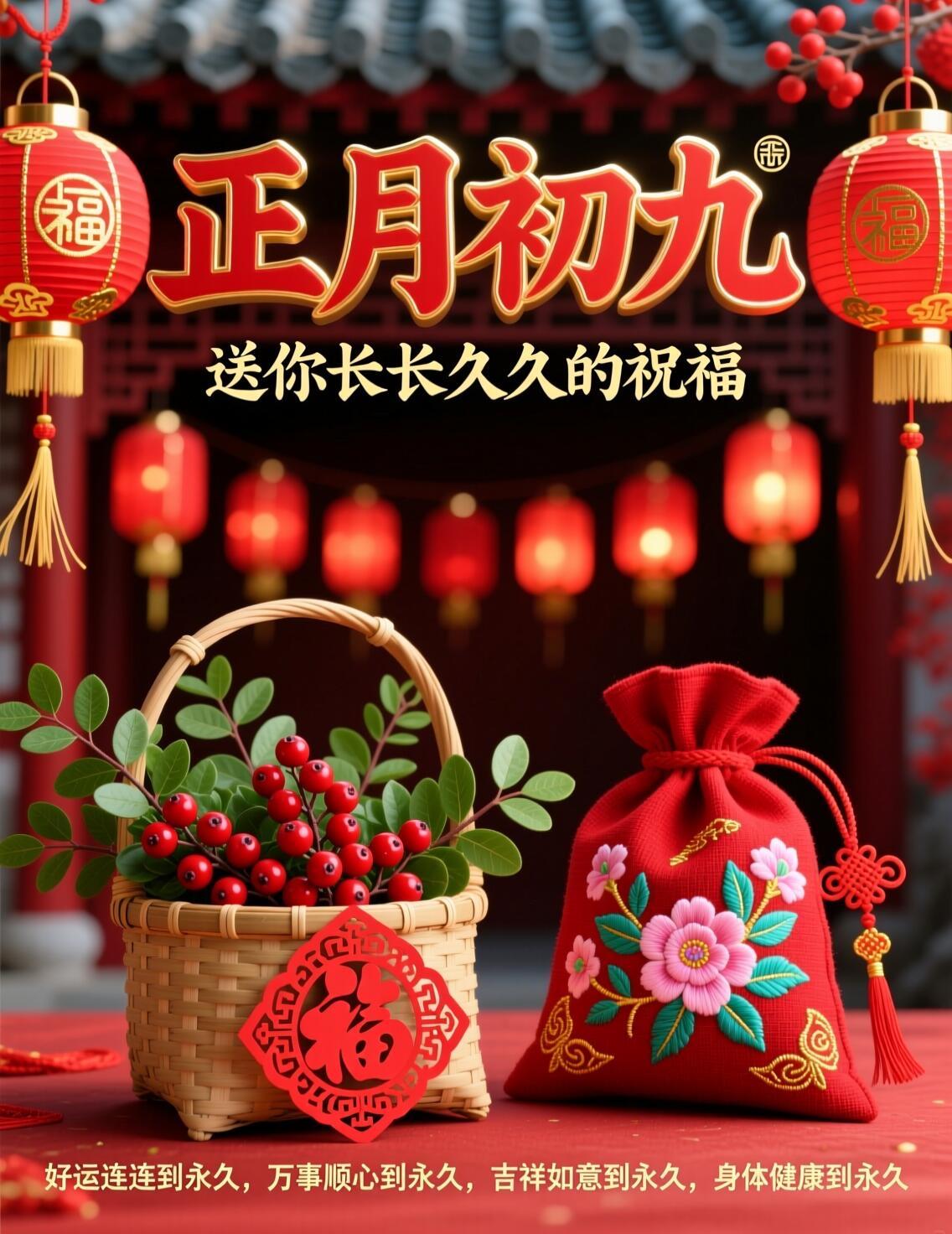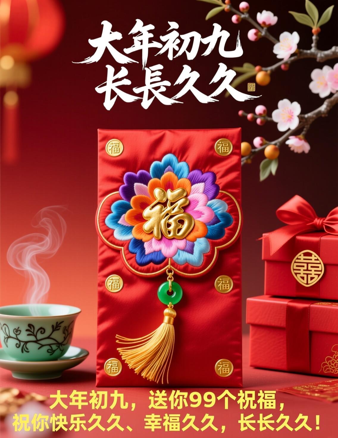 正月初九,福气依旧!九九的期盼,九九的挂牵,好事喜事把你围得团团转。健康久久,平