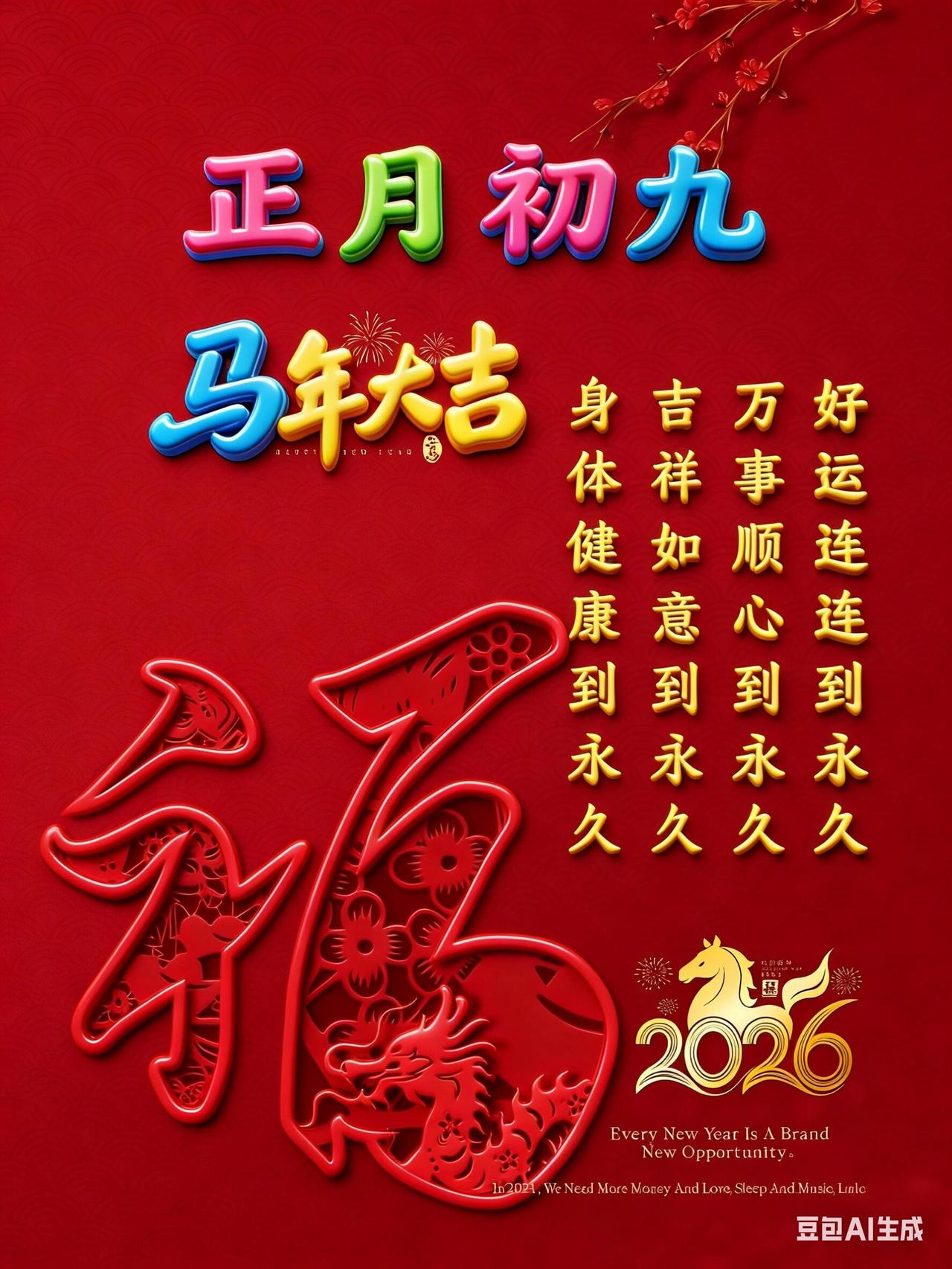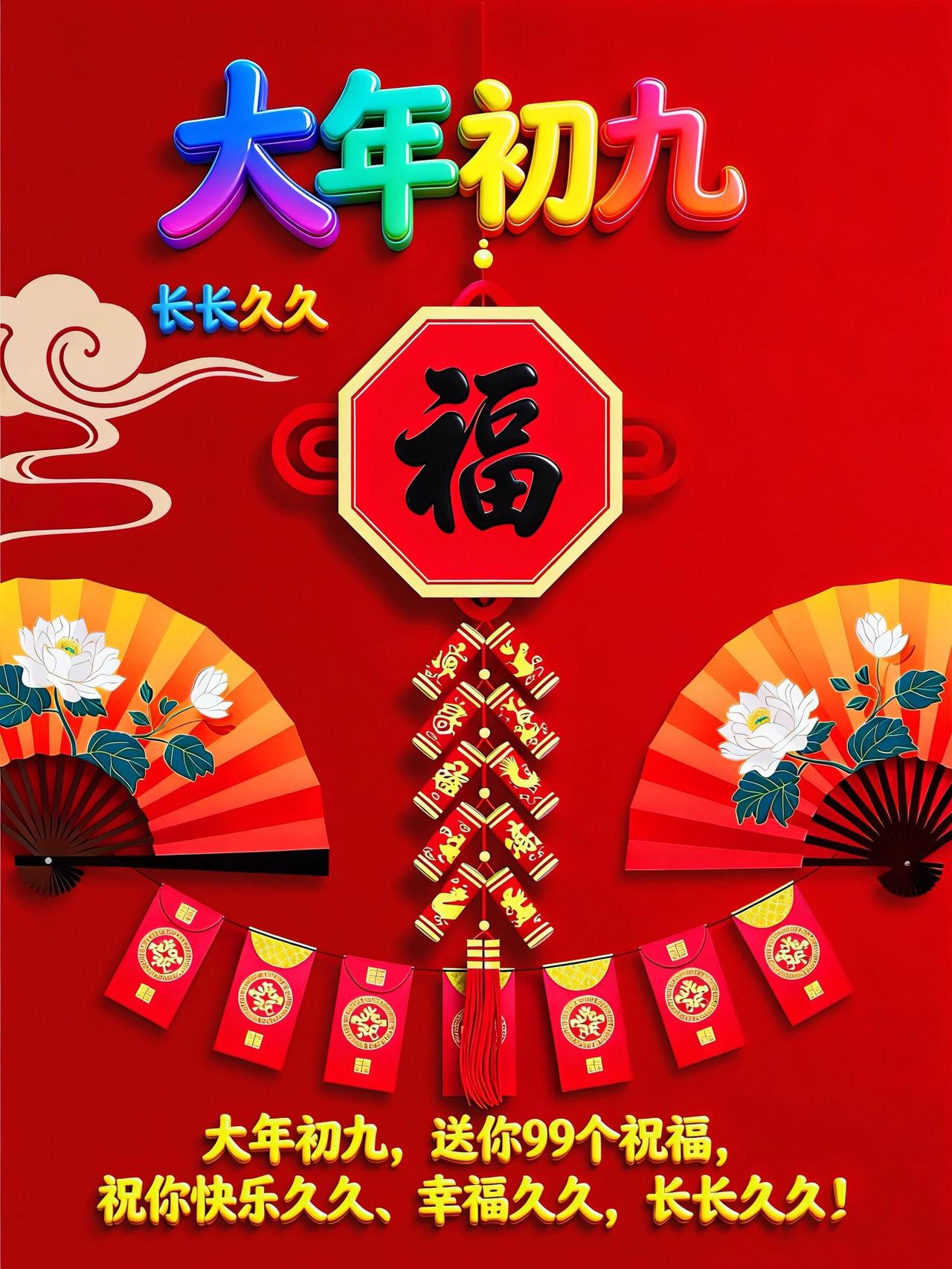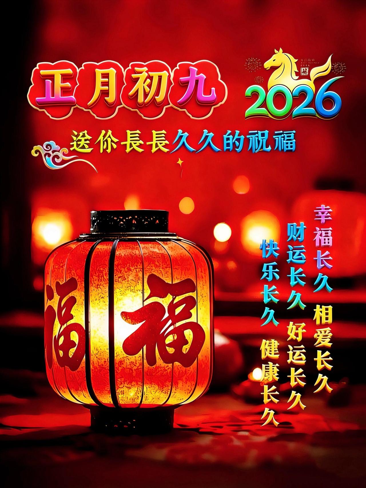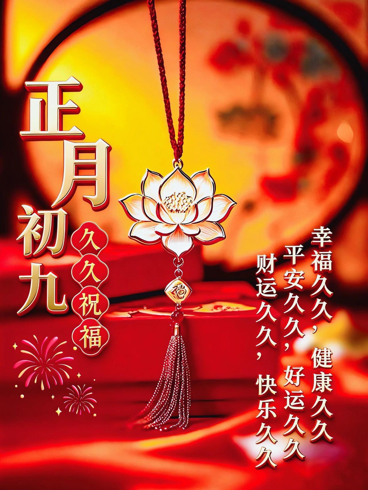 大年初九,长长久久!在这个寓意圆满的好日子,把最真挚的祝福送给你。愿你新的一年:
