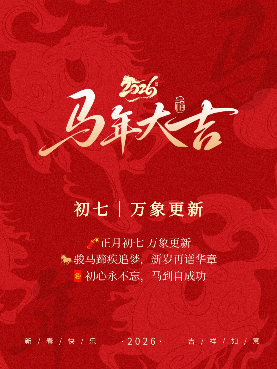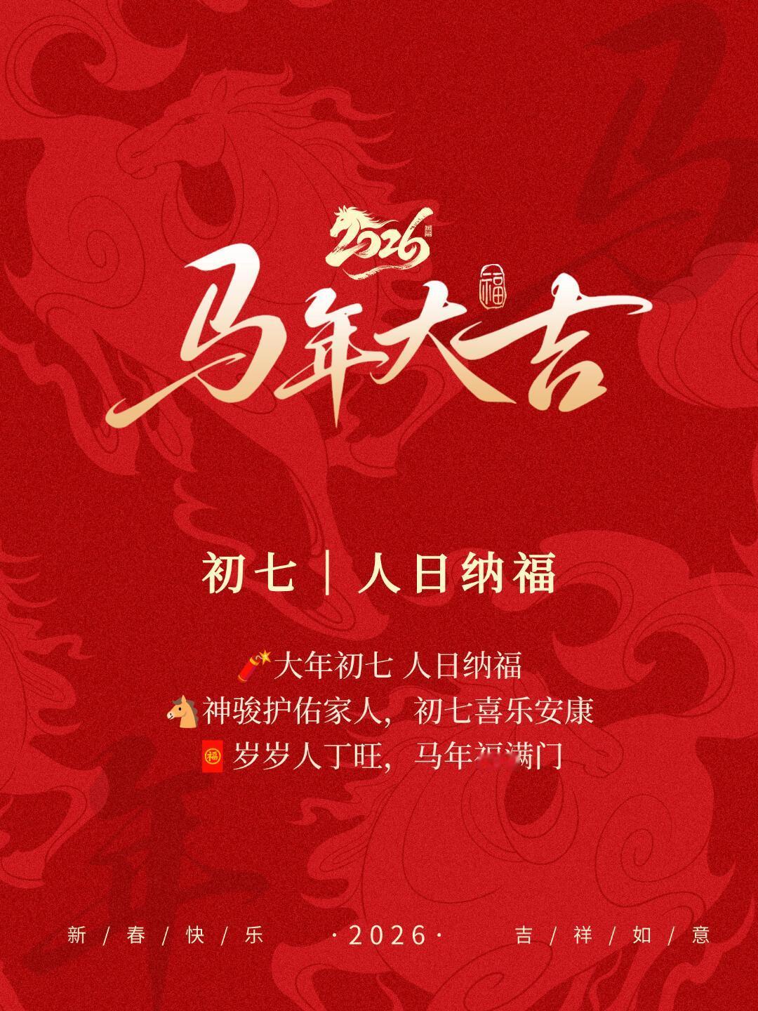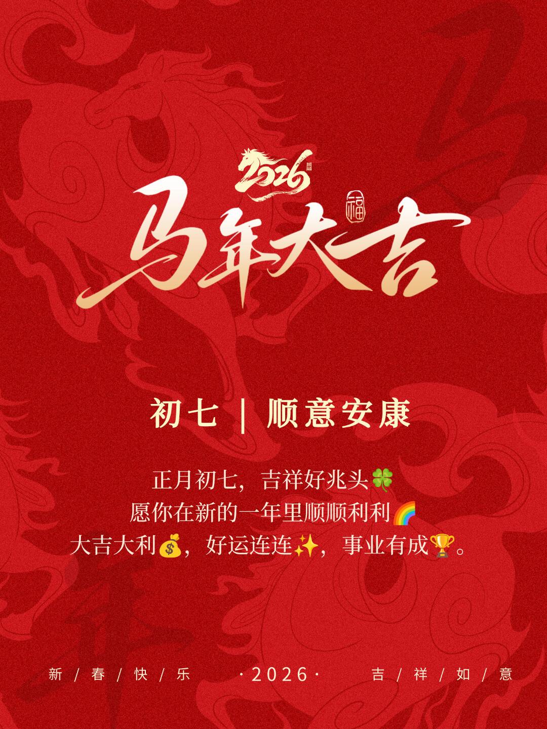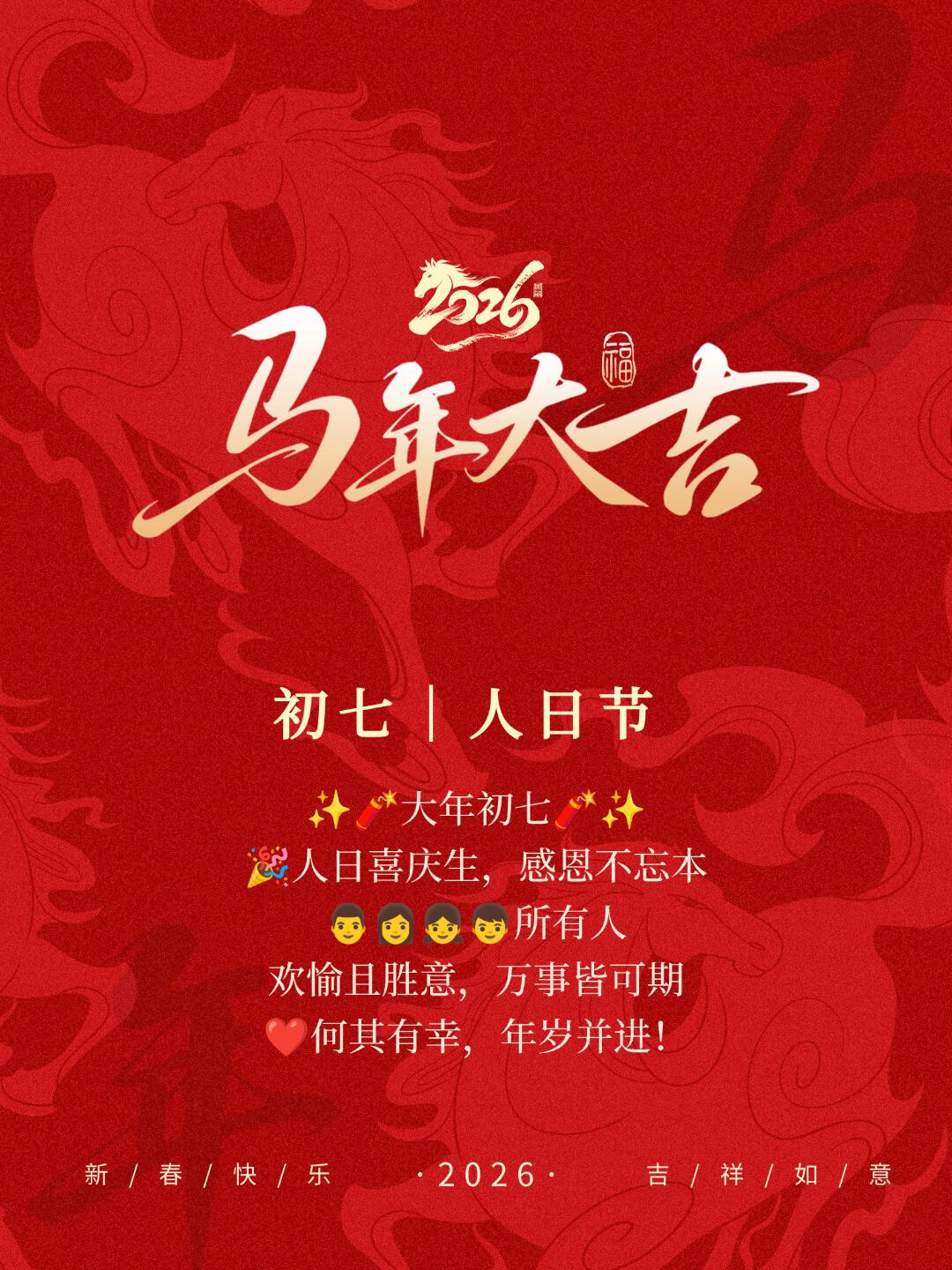 正月初七庆人日,七种福气送给你!🧧 一喜身体棒,二喜家安康, 三喜事业旺,四喜