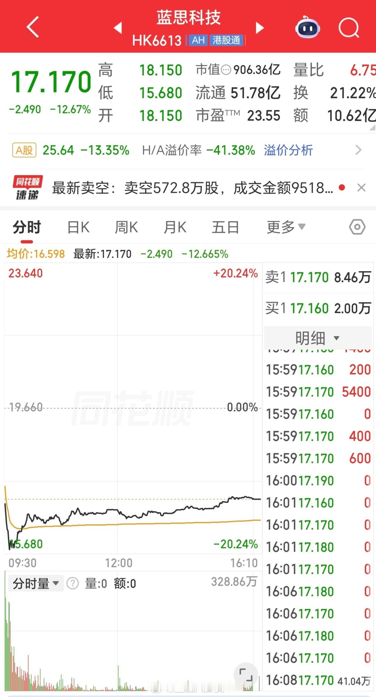 4月16日,A股1300亿消费电子龙头蓝思科技业绩爆雷,一度大跌超15%,市值单日蒸发近200亿元,港股股价也创下上市新低1300亿消费电子龙头蓝思科技业绩爆雷