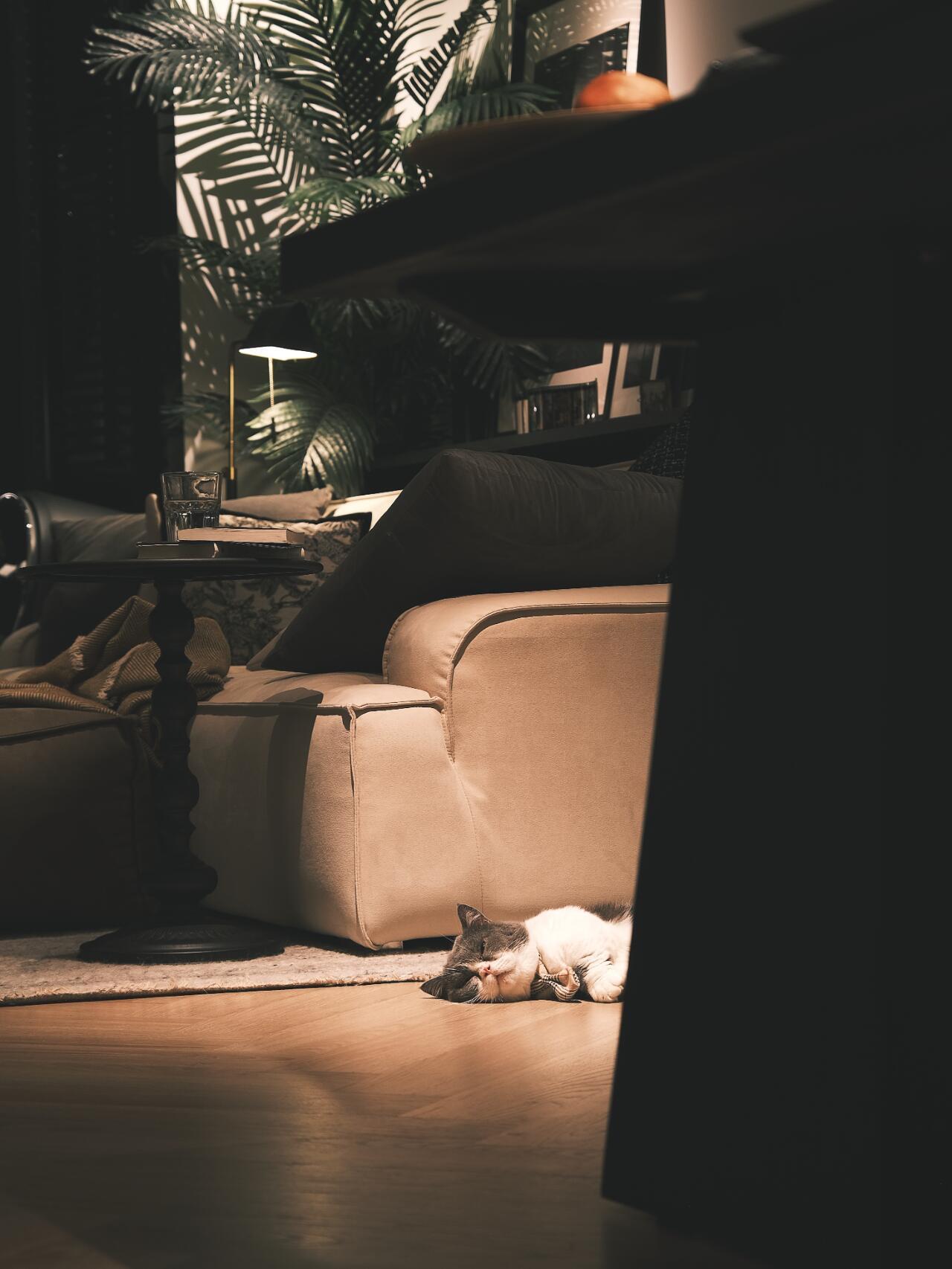 家里还有两只肥猫。每天下班回来,看着它们在自己设计的家里慵懒地躺着、打滚,就觉得特别满足。