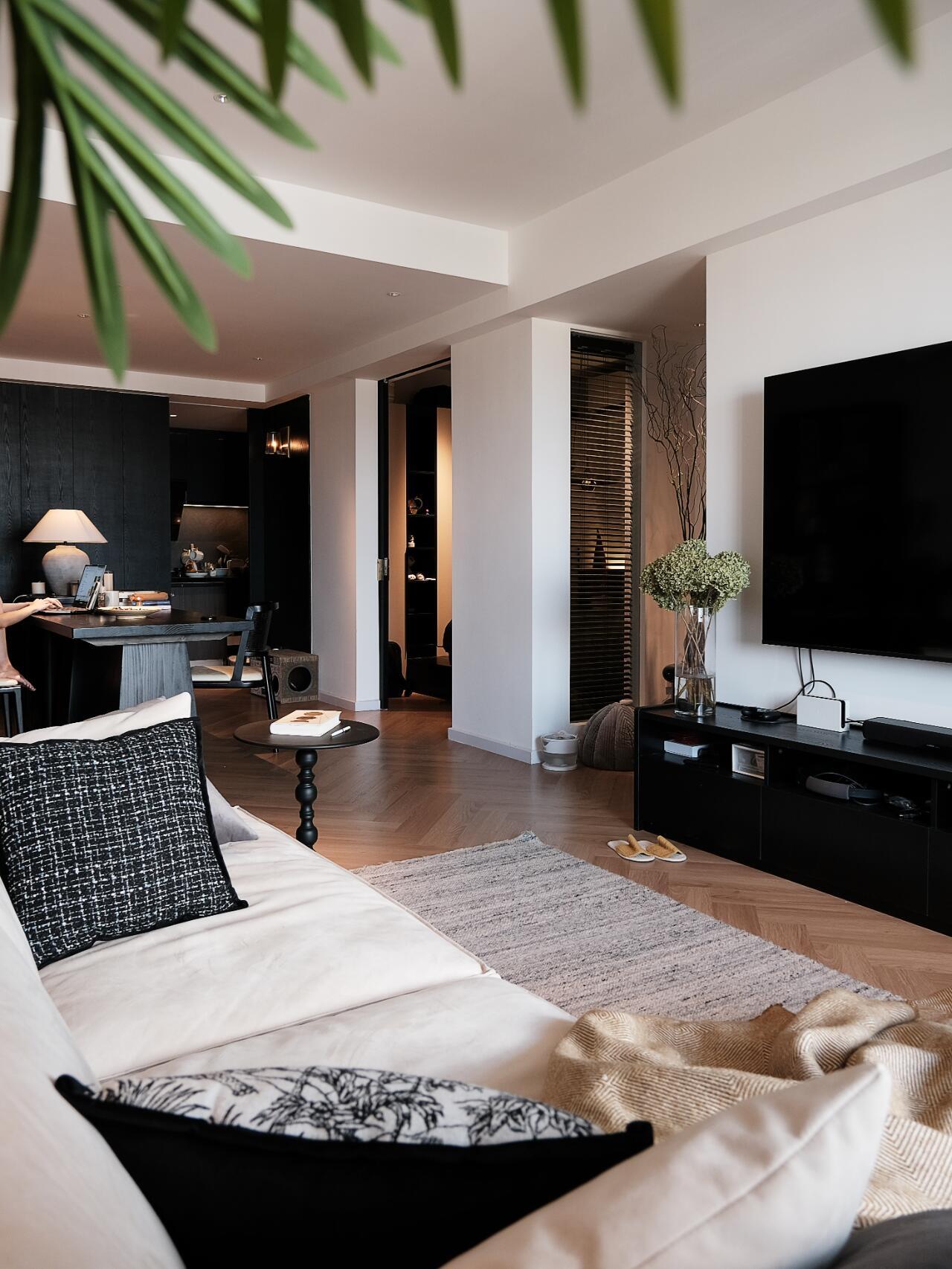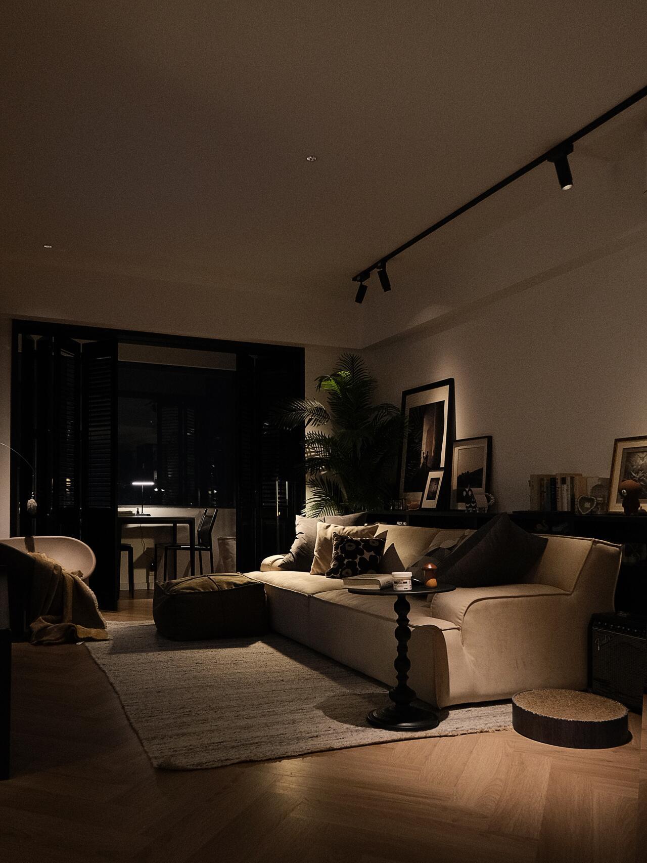 听起来很疯,但每一盏都有它的意义,不同场景、不同时段、不同心情,灯光可以随意切换,白天是清爽的日光照,晚上是温暖的氛围光,他用光硬生生把20万的装修打出了七星级的质感。