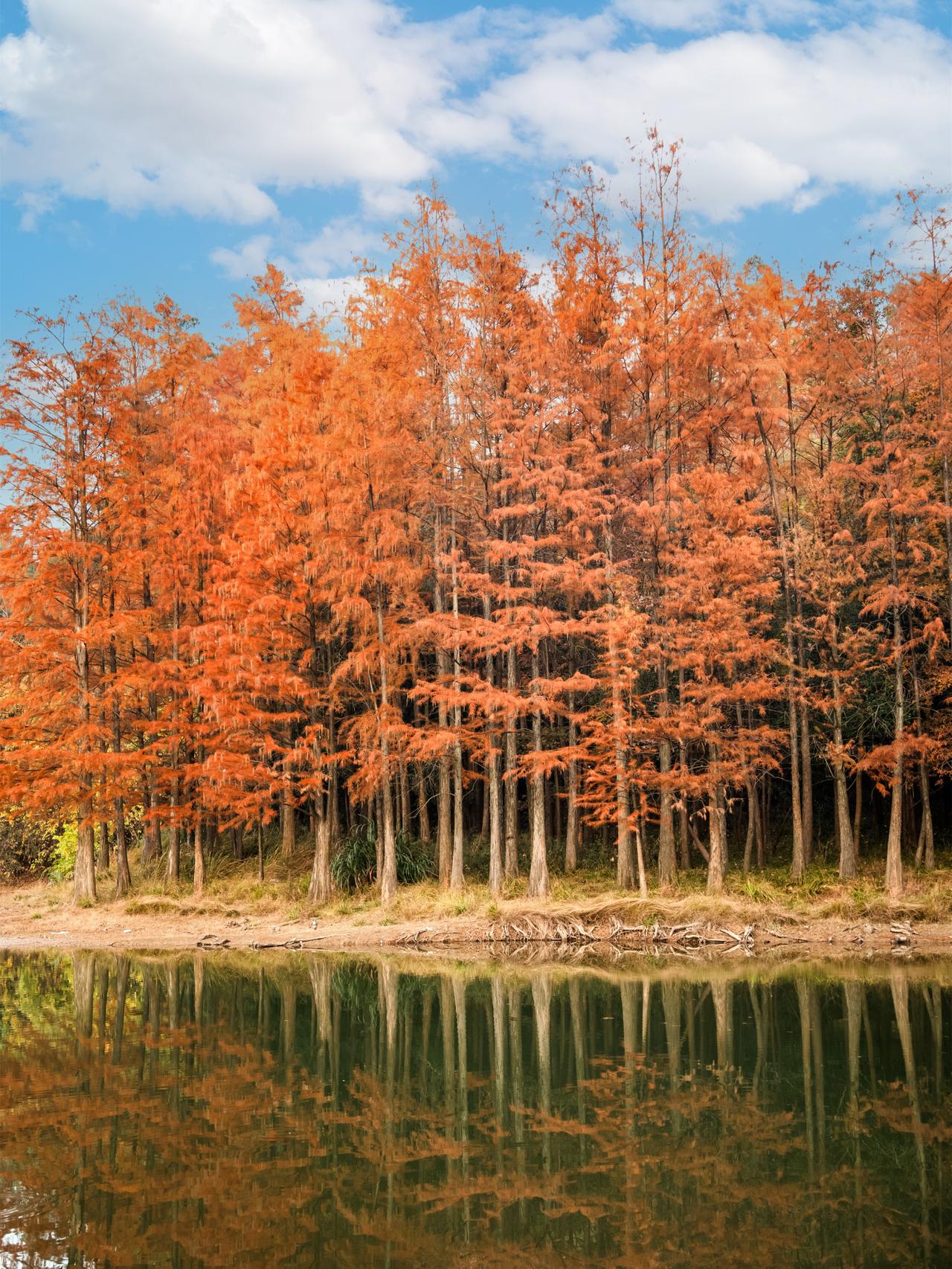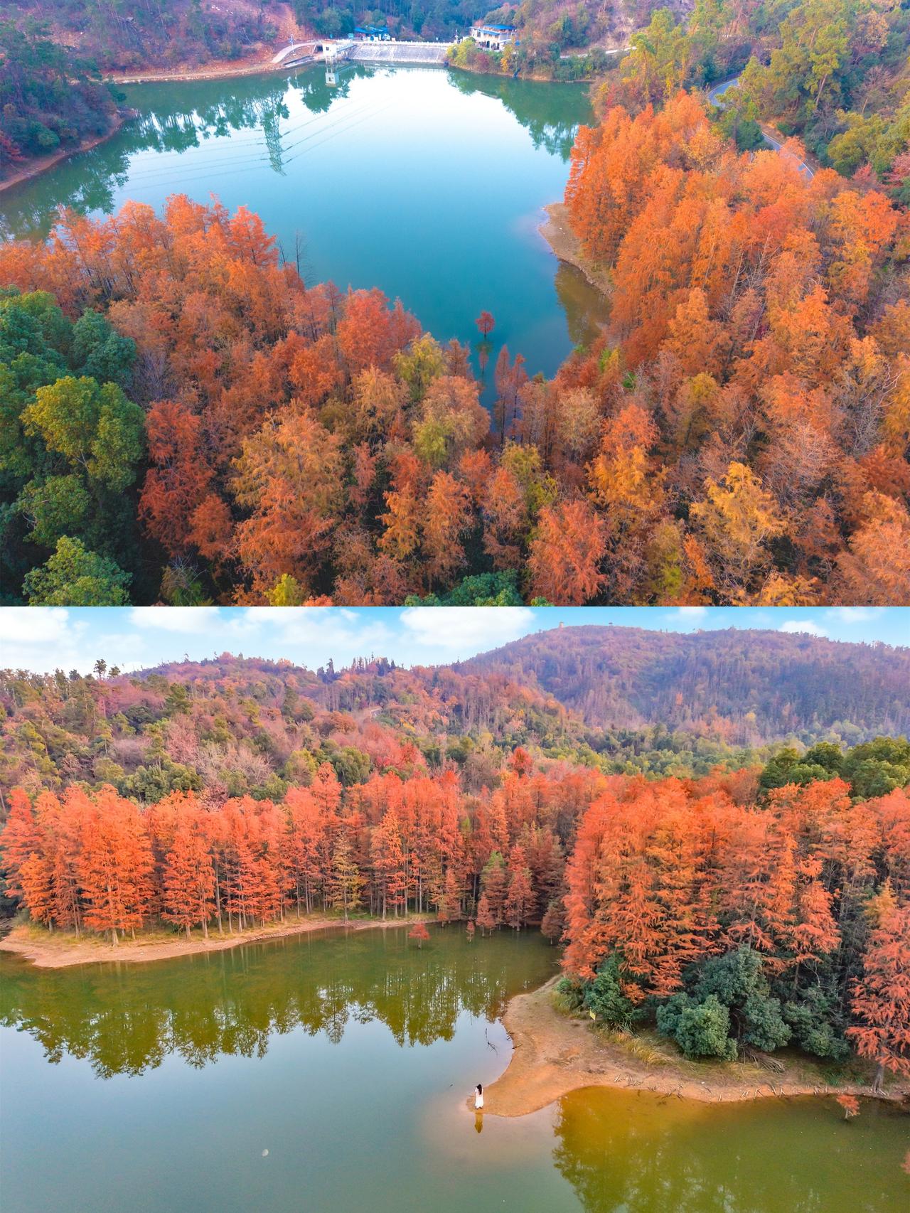 12.1实拍!武汉3处水杉林红了,免费人少 12月第一天就去打卡了江夏的水杉 已