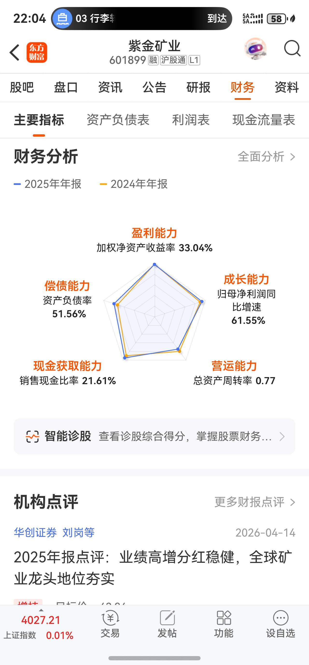 核心产品产量方面,2025年矿产金产量89.54吨(同比+22.77%),矿产铜产量108.51万吨(同比+1.56%),当量碳酸锂2.55万吨。毛利率达27.73%,同比大幅提升7.36个百分点,盈利能力持续优化。