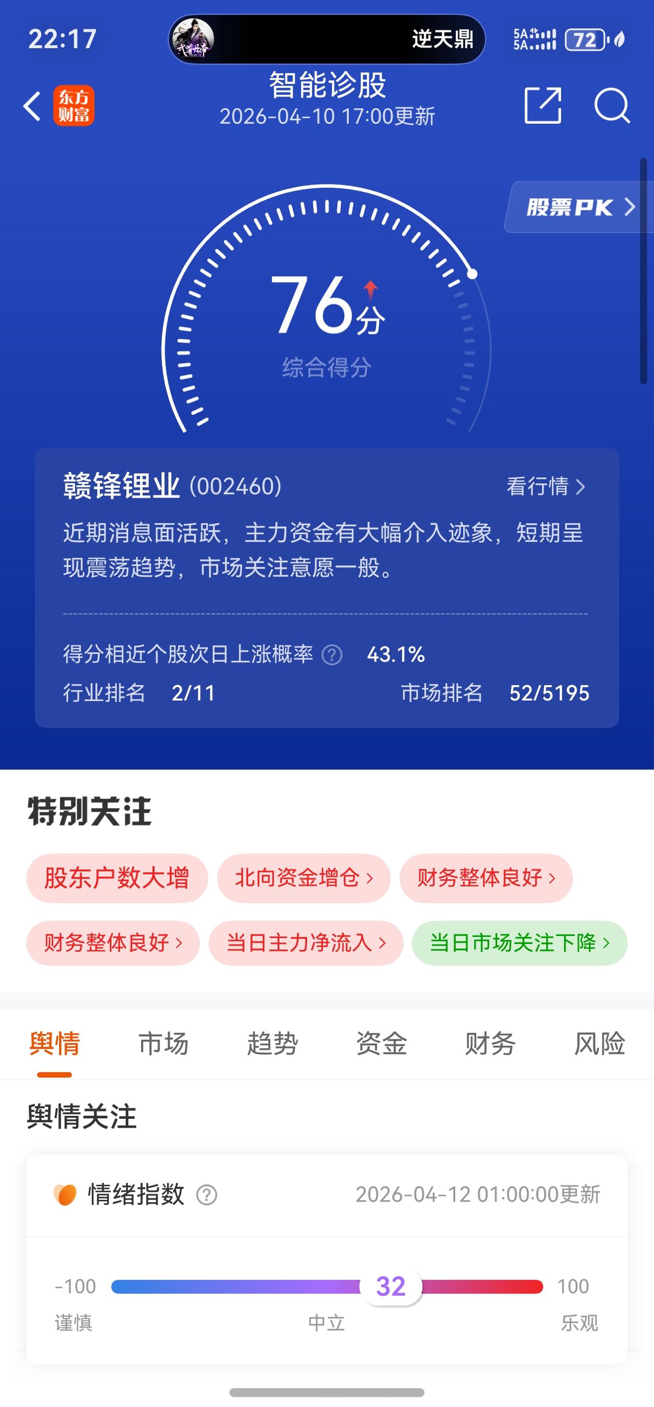 截至4月10日,深股通持股7096.56万股,占流通股比5.87%。但近10日北向资金流出8天,4月10日单日减持161.62万股,表明外资近期对赣锋锂业以获利了结为主,"聪明钱"流出持续性较强。