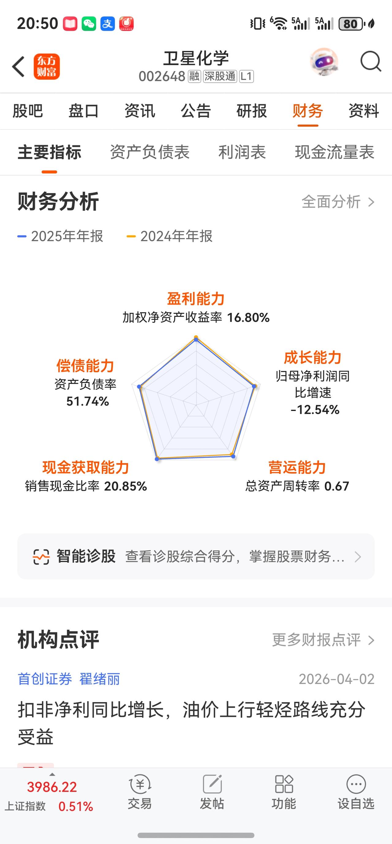 核心投资逻辑在于:近期地缘冲突推高国际油价,轻烃(乙烷、丙烷)裂解路线相比传统石脑油路线的成本优势进一步放大。卫星化学作为国内C2/C3轻烃一体化龙头,有望在高油价中枢下显著受益。