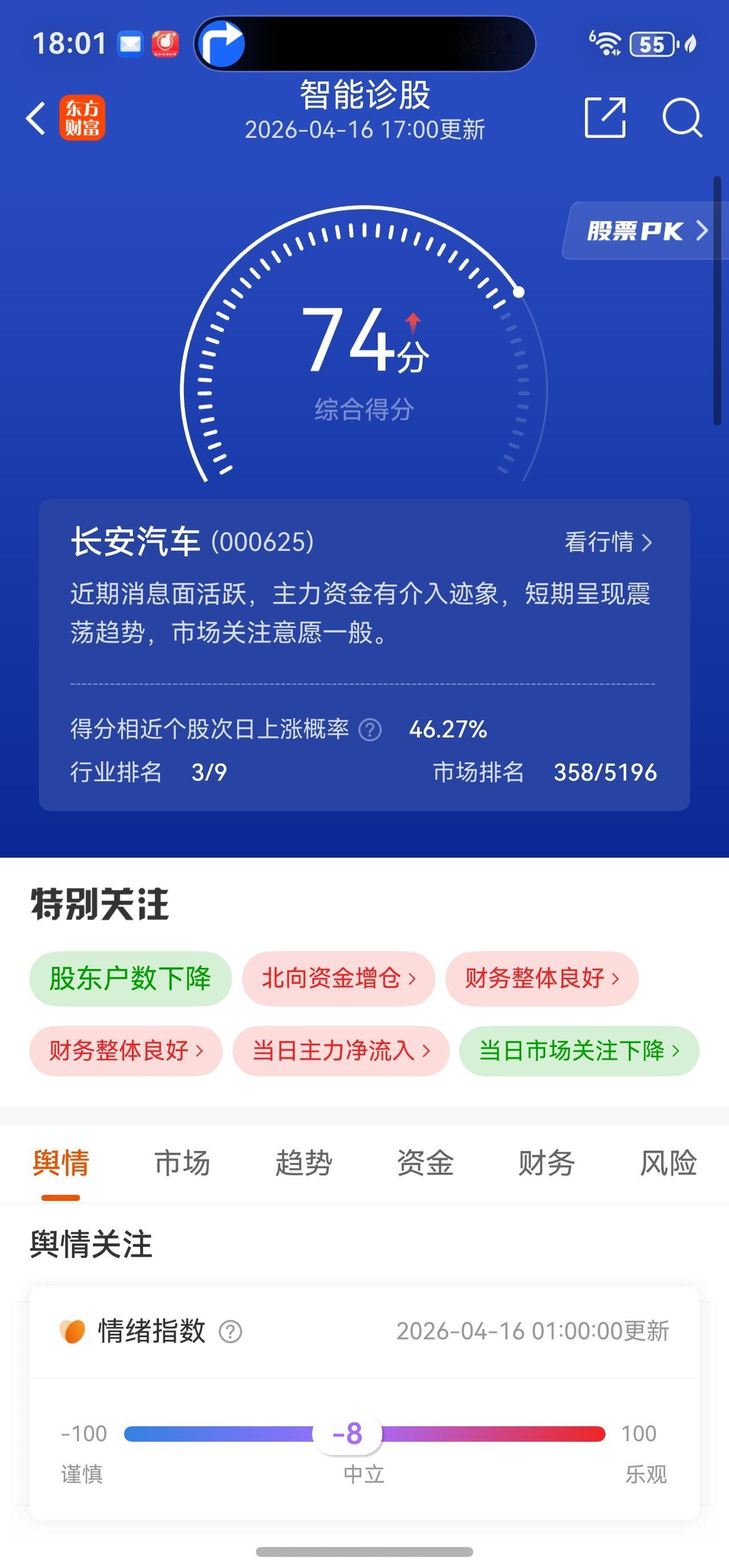 长安汽车A股今日走势情况及展望