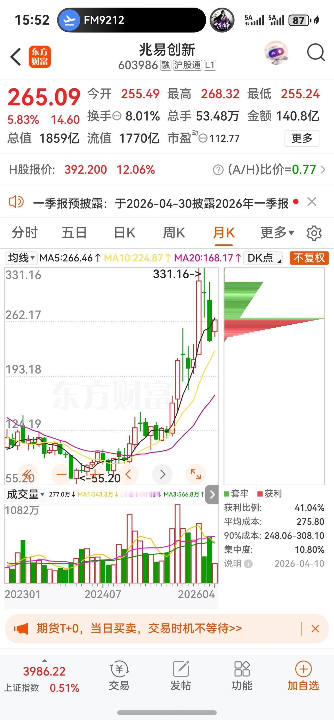 截至4月10日,该股静态PE约112.78倍,TTM PE约106倍。以机构平均预测2026年净利润29.53亿元测算,对应2026年前瞻PE约63倍;以东方证券预测的47.46亿元计算,前瞻PE则降至39倍。