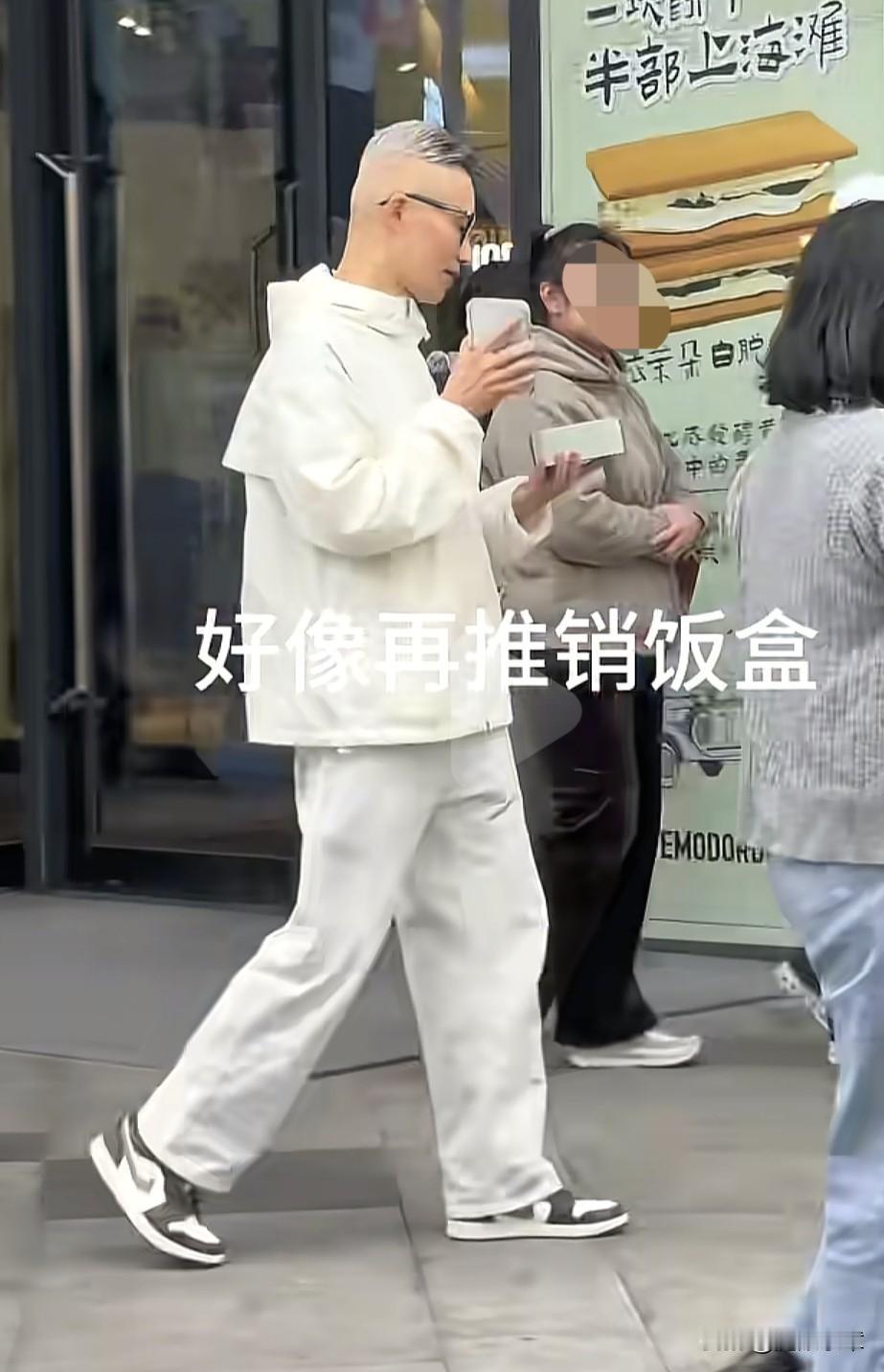 程雷街头拍摄短视频,被眼尖的粉丝网友捕捉偷拍到。