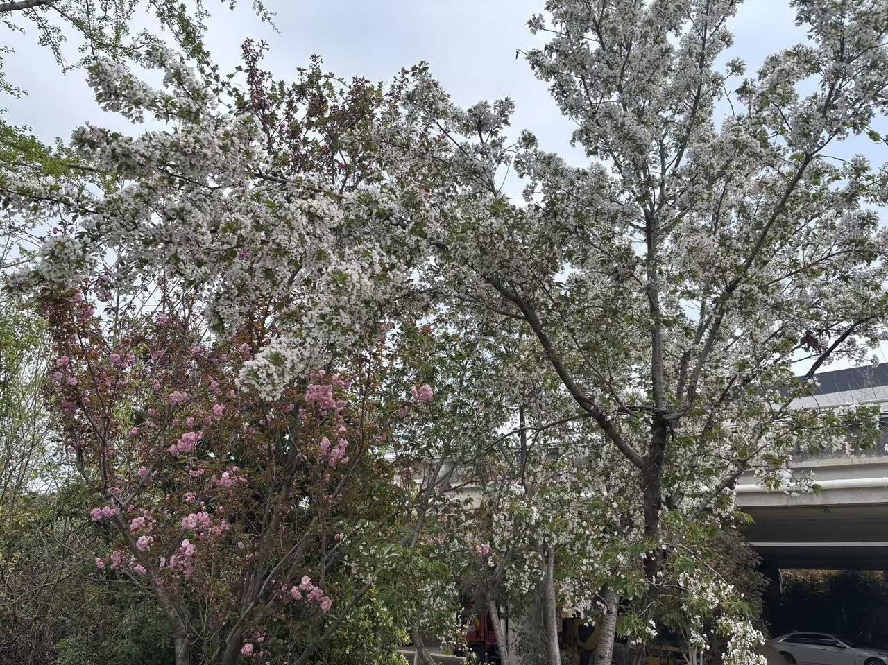 2、午后散步,漫步在草地上,看着路边的樱桃树及桃树花都开得很艳,红白相映,煞是好看,本来早上一路走来,一路桃花不绝于眼,哪怕春天凉意再足,依旧是挡不住一路的桃花灿烂,还是很有韵味的。白天阳光高照,只是到了今晚时分,天气报告准备准了,一场大雨如期而至,还好下班时暂时停歇,却有一种空山新雨后,天气晚来秋的意境。