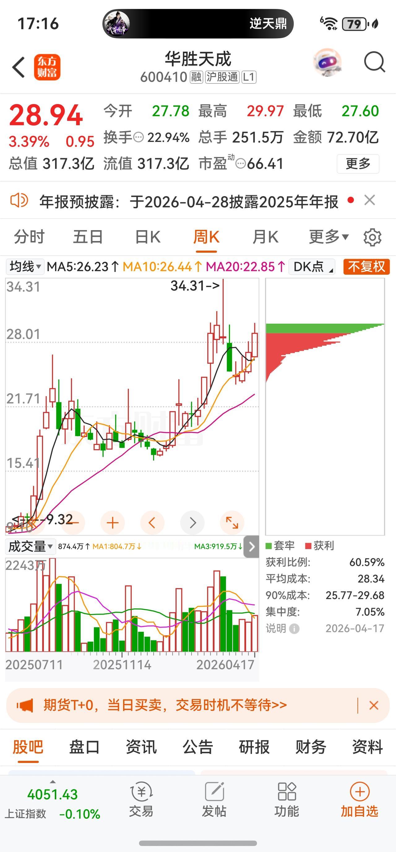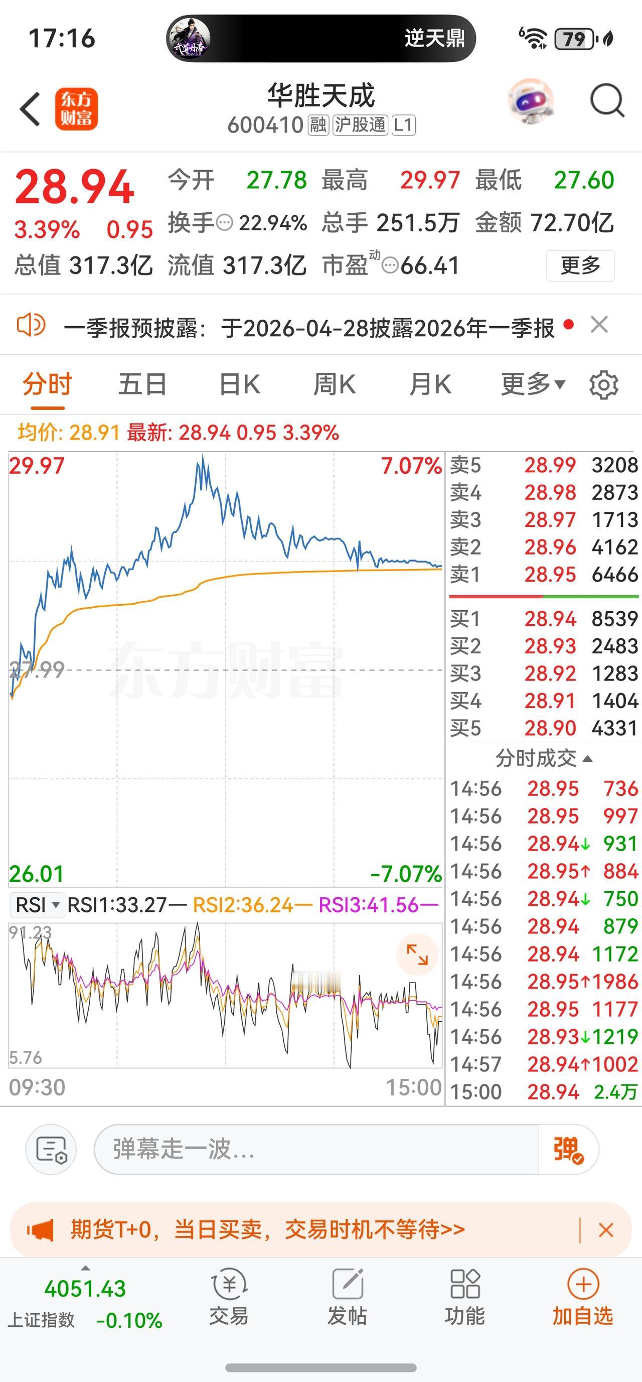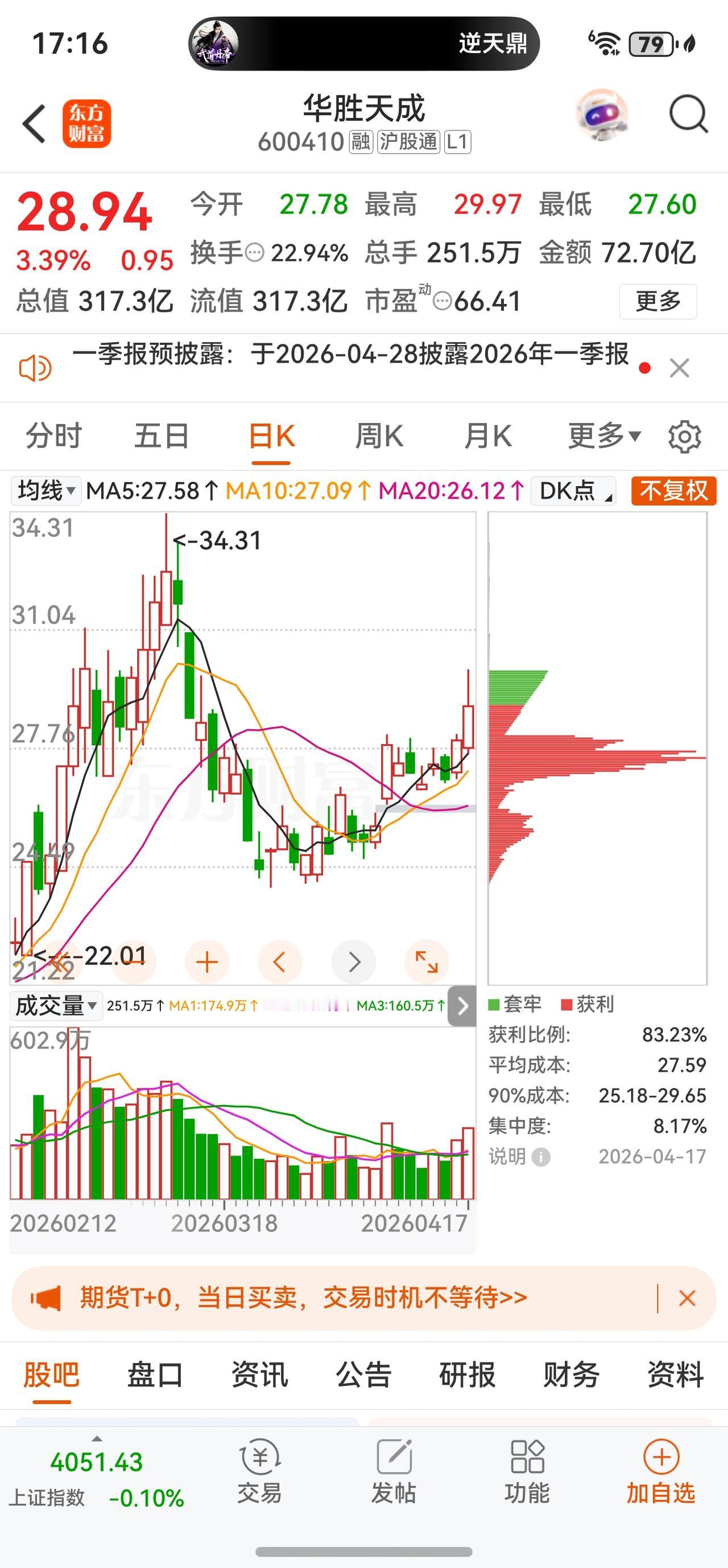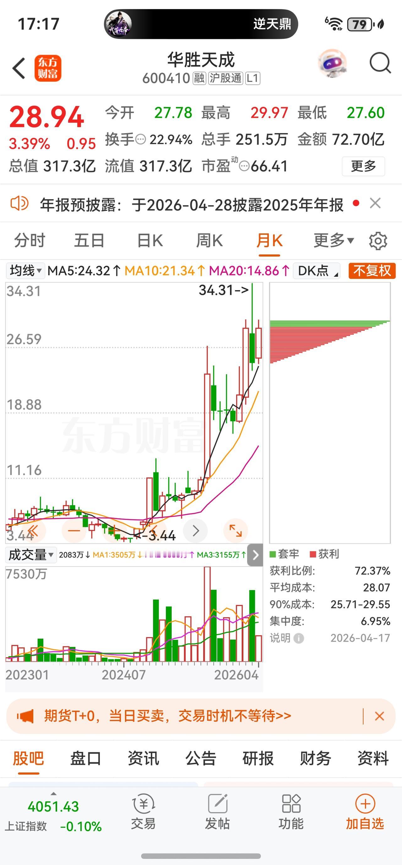 4月17日 28.94元 +3.39% 22.94% 72.70亿