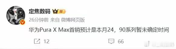 【华为Pura X Max被曝4月24日首销!Pura 90开售未定】
