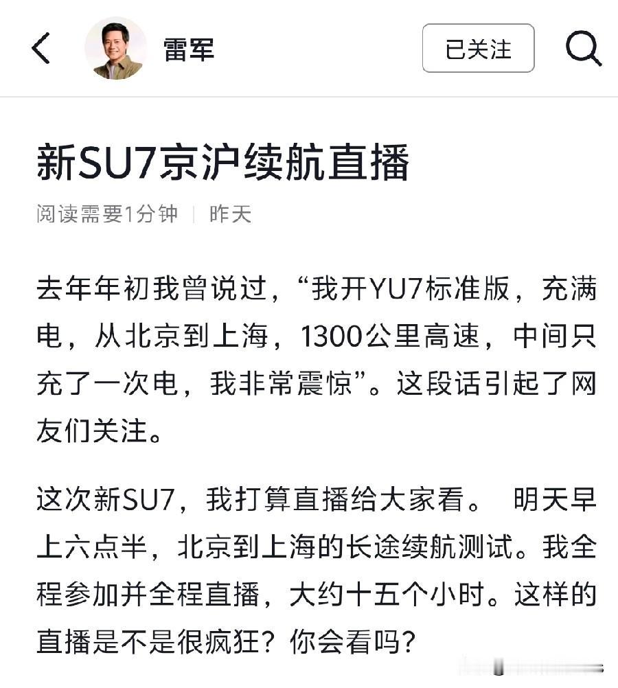 终于可以理解雷军为什么是偶像企业家了吧! 京沪续航直播早上六点多从北京出发除了中