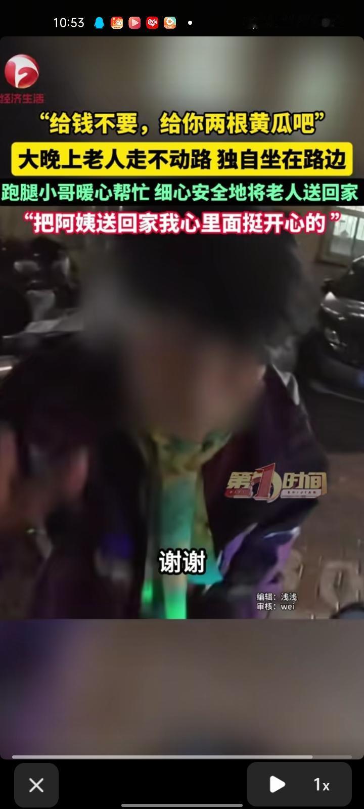 最后,小哥细心开车把老人送回家了,把她送回家后感到很开心,临走时阿姨还给他两根黄瓜。