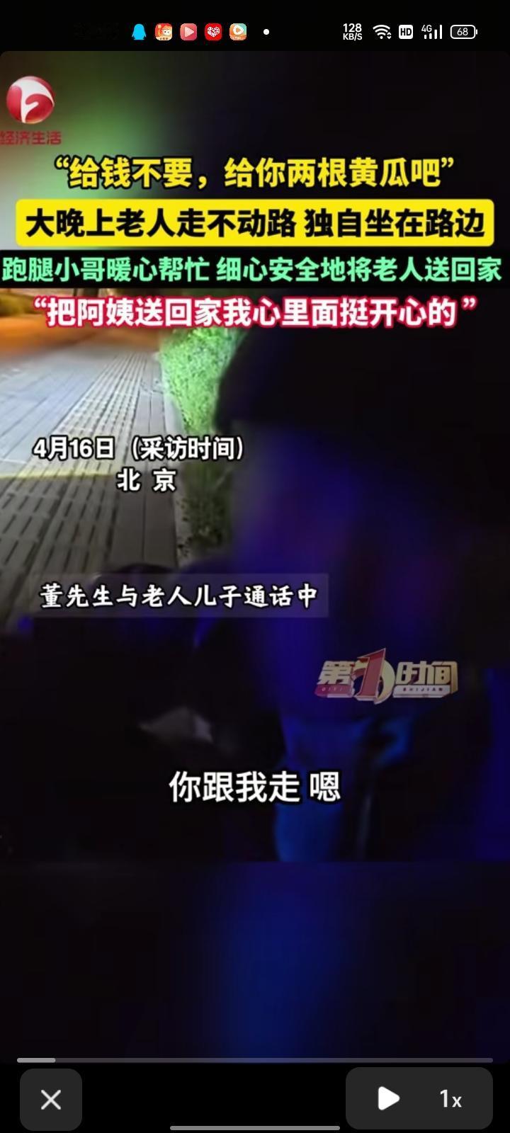 4月15日,北京。跑腿小哥回家时,碰见一位老人独自坐在路边,问后得知她走不动路且迷路了。