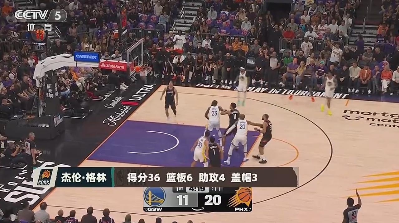 格林今天无论是突破,中投,三分,要什么有什么,简直就是乔丹附体。全场20投14中,3分球14投8中,拿到全场最高的36分。大当家布克今天也只能充当自己小弟的绿叶啊