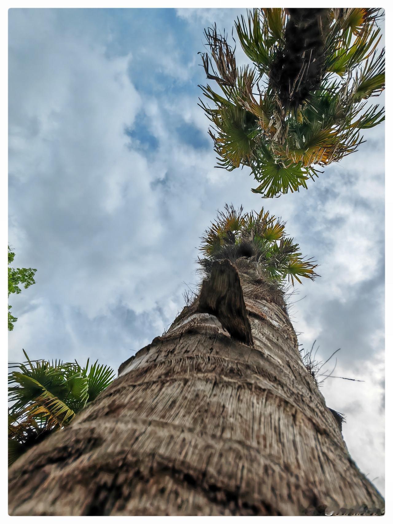 那一团团艳红的花簇,像打翻的调色盘,将春日的鲜活铺展在眼前。几株棕榈亭亭而立,为这温婉的春景添了几分别致的舒展,这本是南国的景致,如今被日月风雨滋养成自带风情的异客。