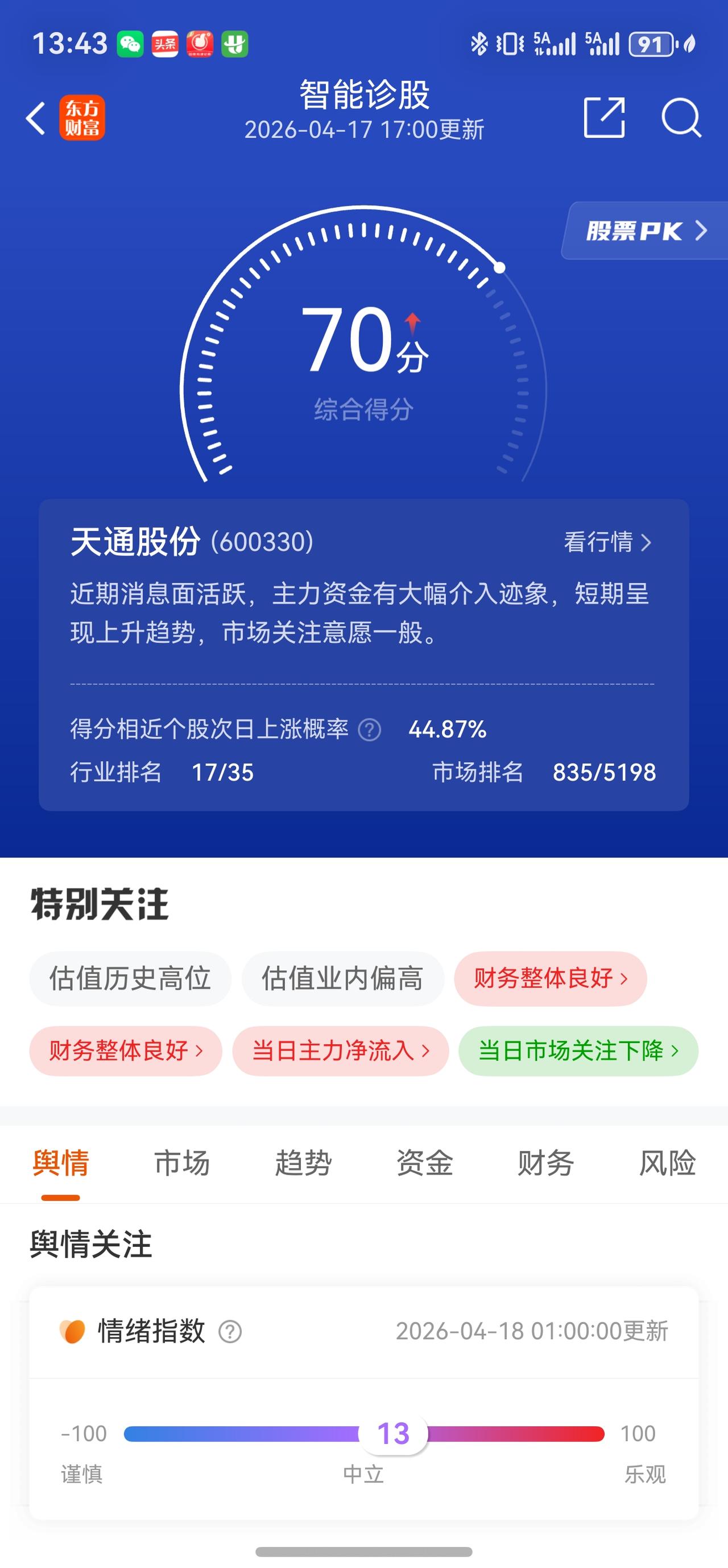 · 4月17日再次涨停:主力净流入约3.98亿元,行业排名1/35。