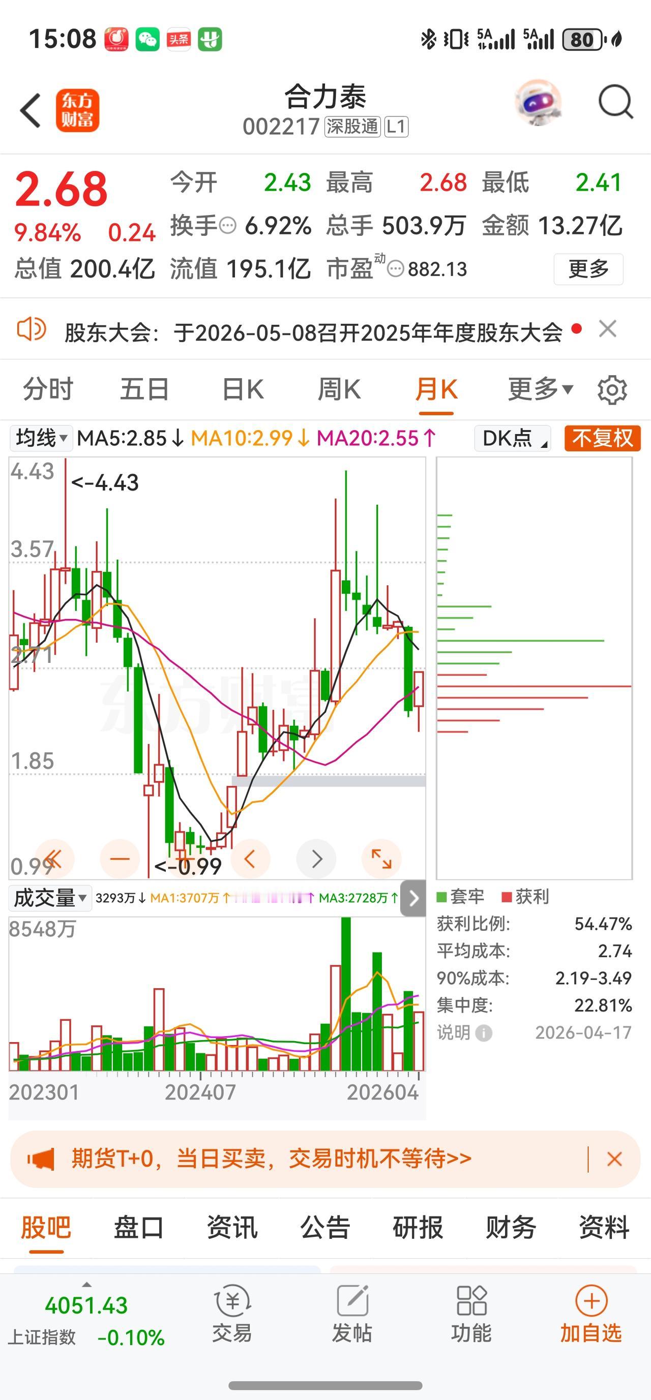 2. 量能能否持续:周五成交额高达13.27亿元,换手率6.92%,若后续缩量回调且不破2.50元支撑位,则短期强势格局有望延续;
