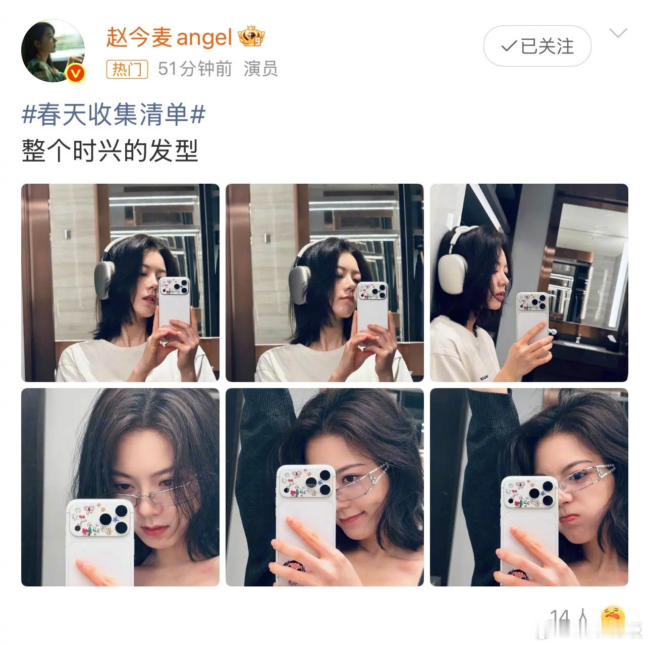 赵今麦整了个时兴的发型赵今麦短发帅成啥了 赵今麦的春日限定短发自拍来啦!蓬松及肩
