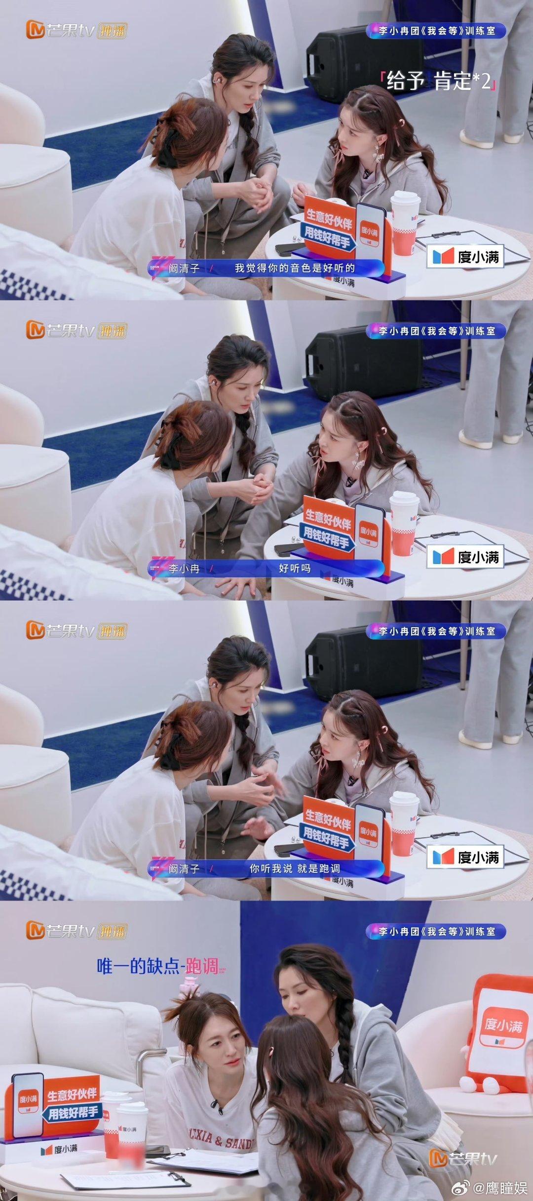 到了二公备战,李小冉才迎来“社死”时刻。她先是困惑地问队友徐洁儿自己唱得如何,得到“转音好听”的委婉评价后,她懵懂追问:“啥叫转音啊?”一旁的阚清子看不下去,直接捅破窗户纸:“你音色好听,就是跑调。”李小冉瞬间顿悟,自嘲道:“我缺心眼呗!平时是不是太高看自己了?”