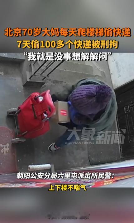 她反复强调自己不缺钱,退休金高得很,偷快递只是为了“拆盲盒”找乐子。