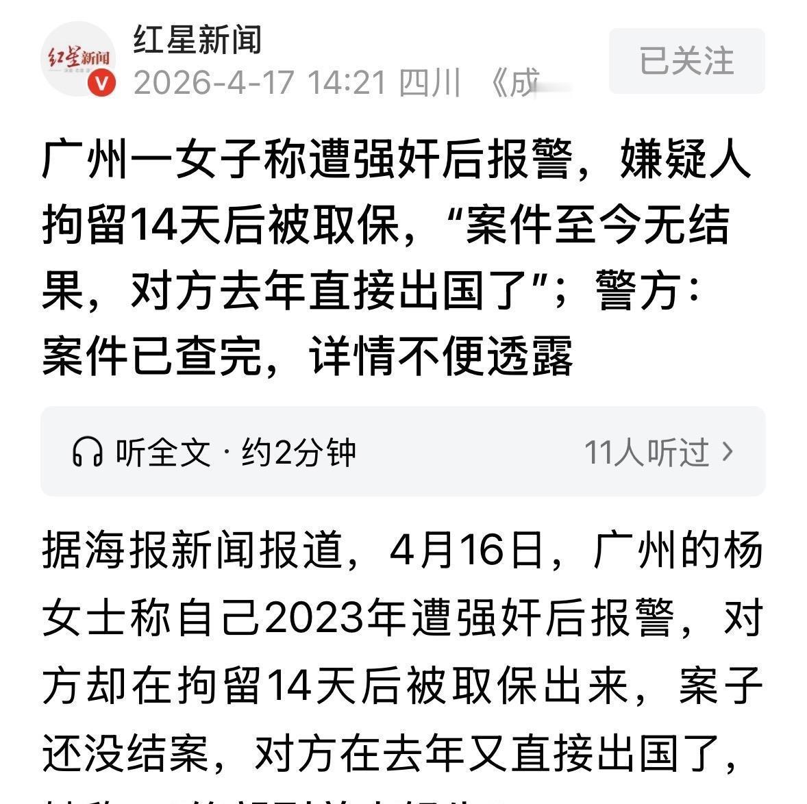 谁能想到,前一晚还同床共枕,第二天退房回到白云区后,两人不知起了什么巨大的利益冲突。杨女士眼看谈不拢,反手就拨了110,给孩子亲爹扣上了一顶强奸的帽子。