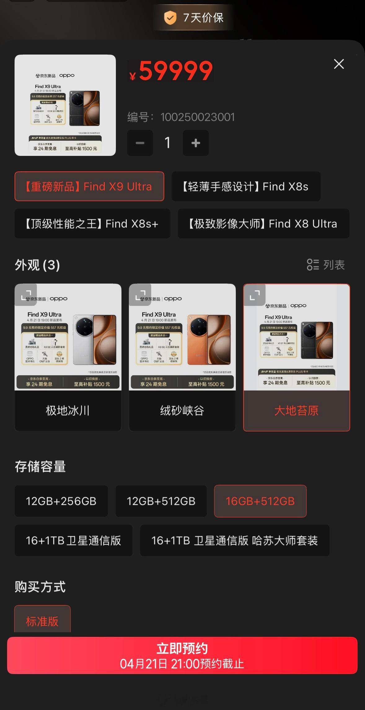 OPPO Find X9 Ultra12GB+256GB12GB+512GB16GB+512GB16GB+1TB 卫星通信版16GB+1TB 卫星通信版 哈苏大师套装