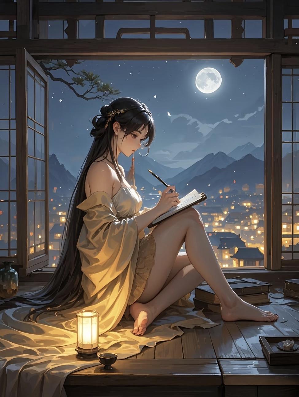 上联:明月窗前窥墨客