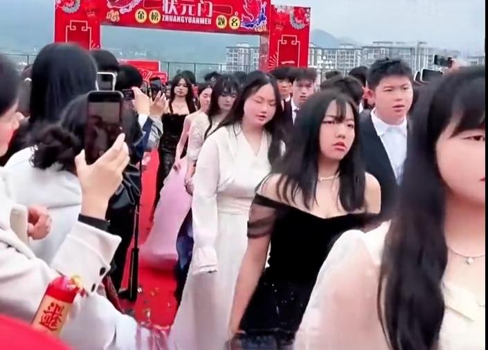 当天,其他同学的父母都打扮得体体面面,陪着孩子走红毯。