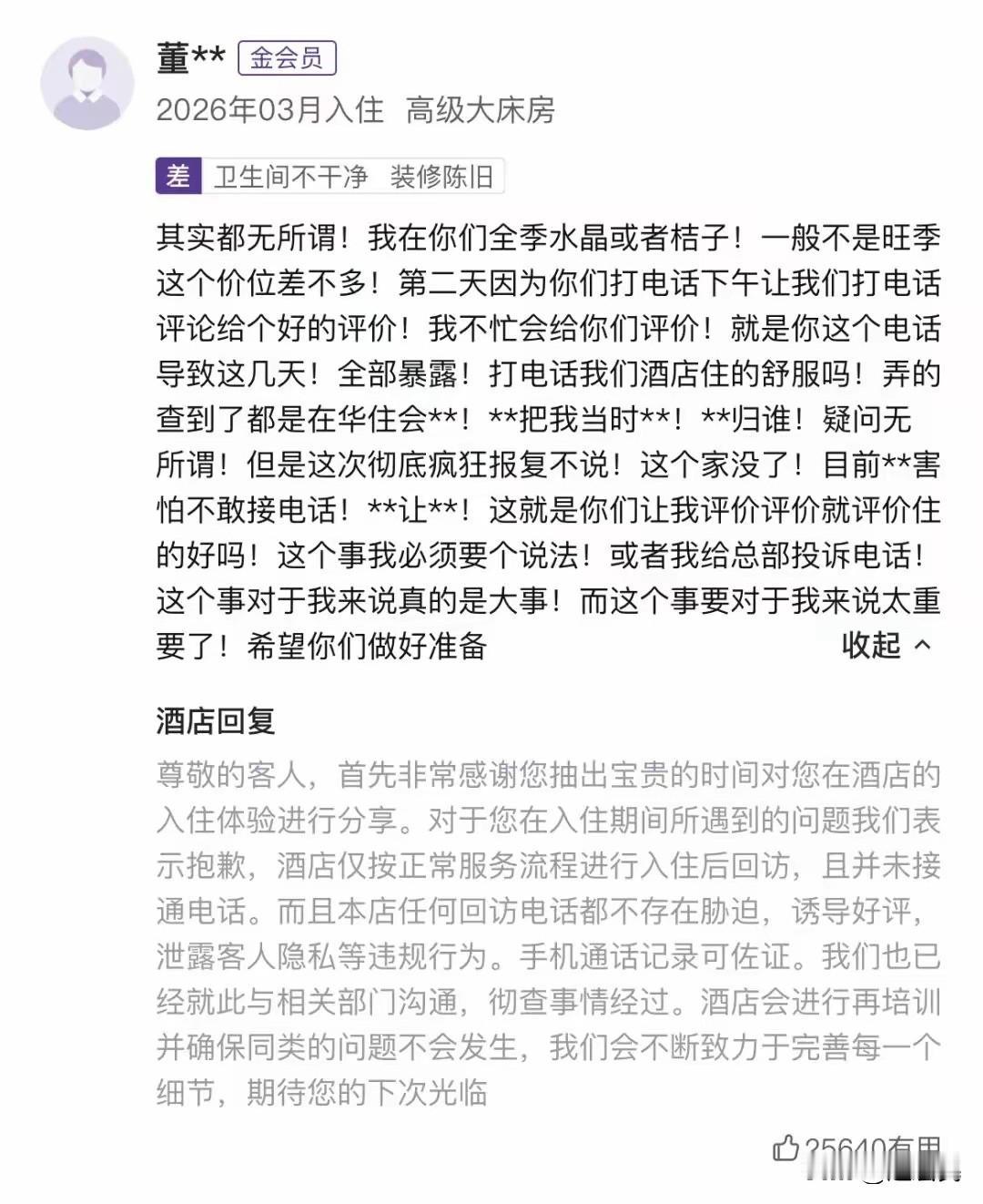 两位酒店顾客对酒店的差评[允悲]。。。