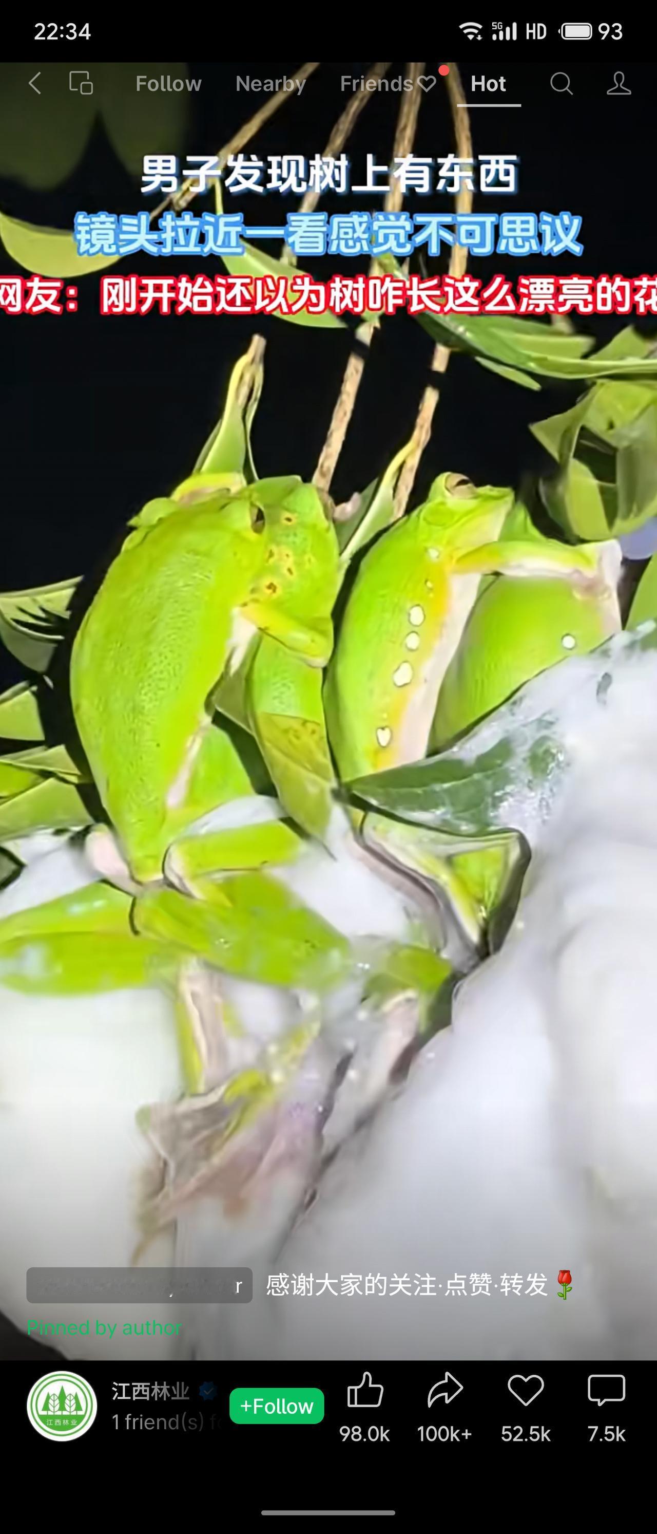 原来树上那些“漂亮的花”是树蛙!它趴在枝头,四肢和身体几乎与叶片融为一体,绿色皮