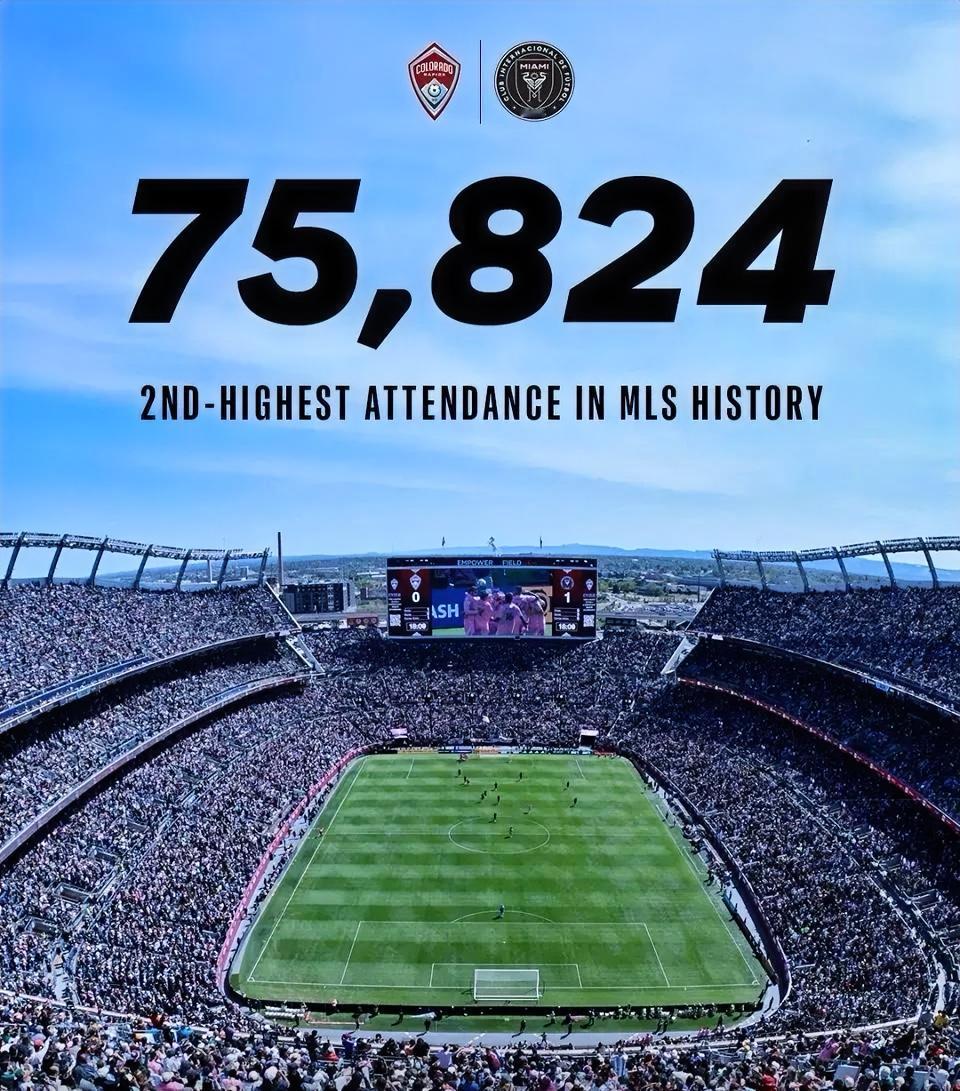 这场比赛直接炸场,75824人现场观战,创下美职联历史第二高上座纪录!放眼望去全是人,呼声震耳欲聋,完全不像客场,倒像是梅西的专属主场!