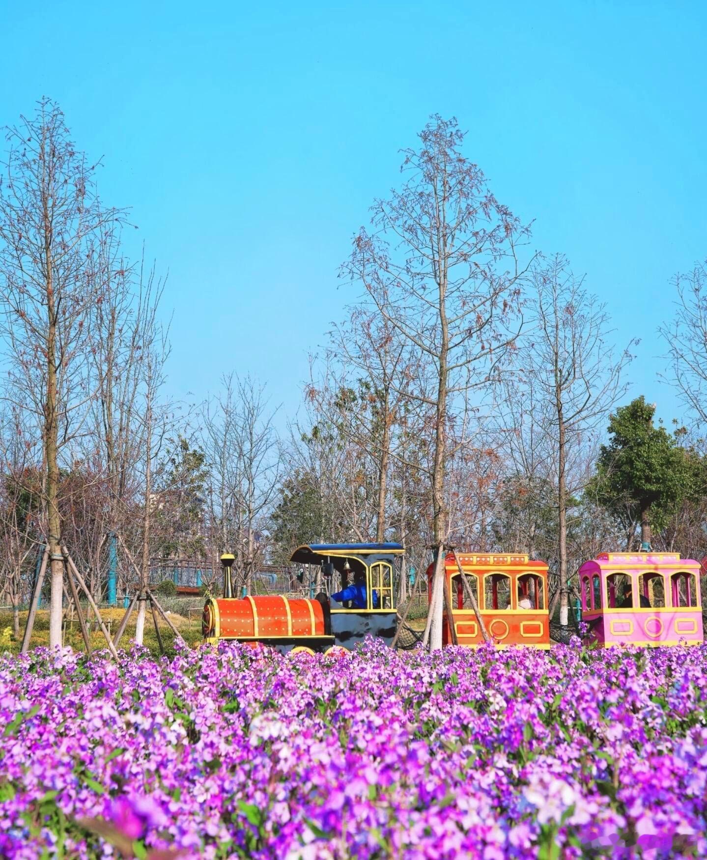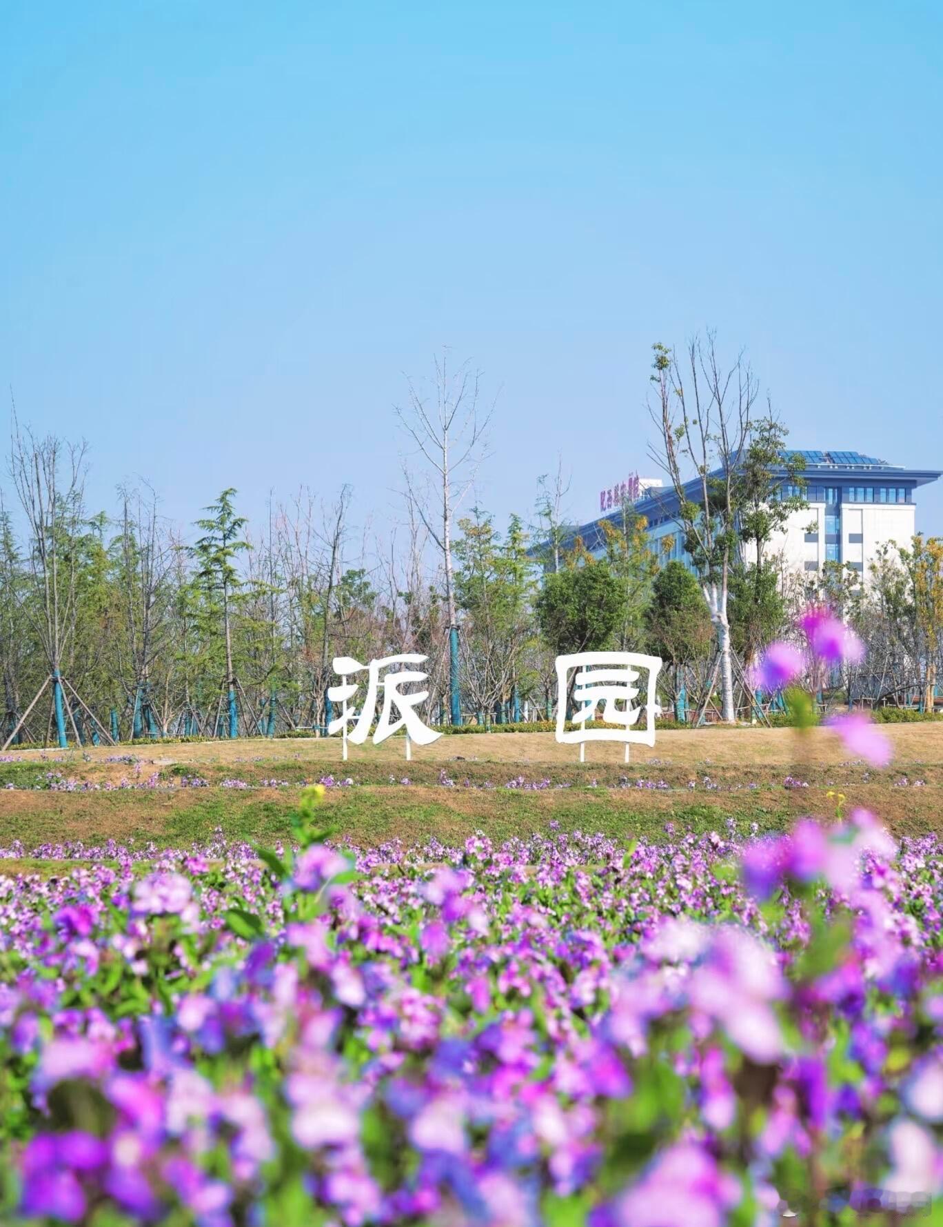 合肥肥西派园春日花海。紫色二月兰、金黄油菜花、粉白樱花一键集齐。微风一...