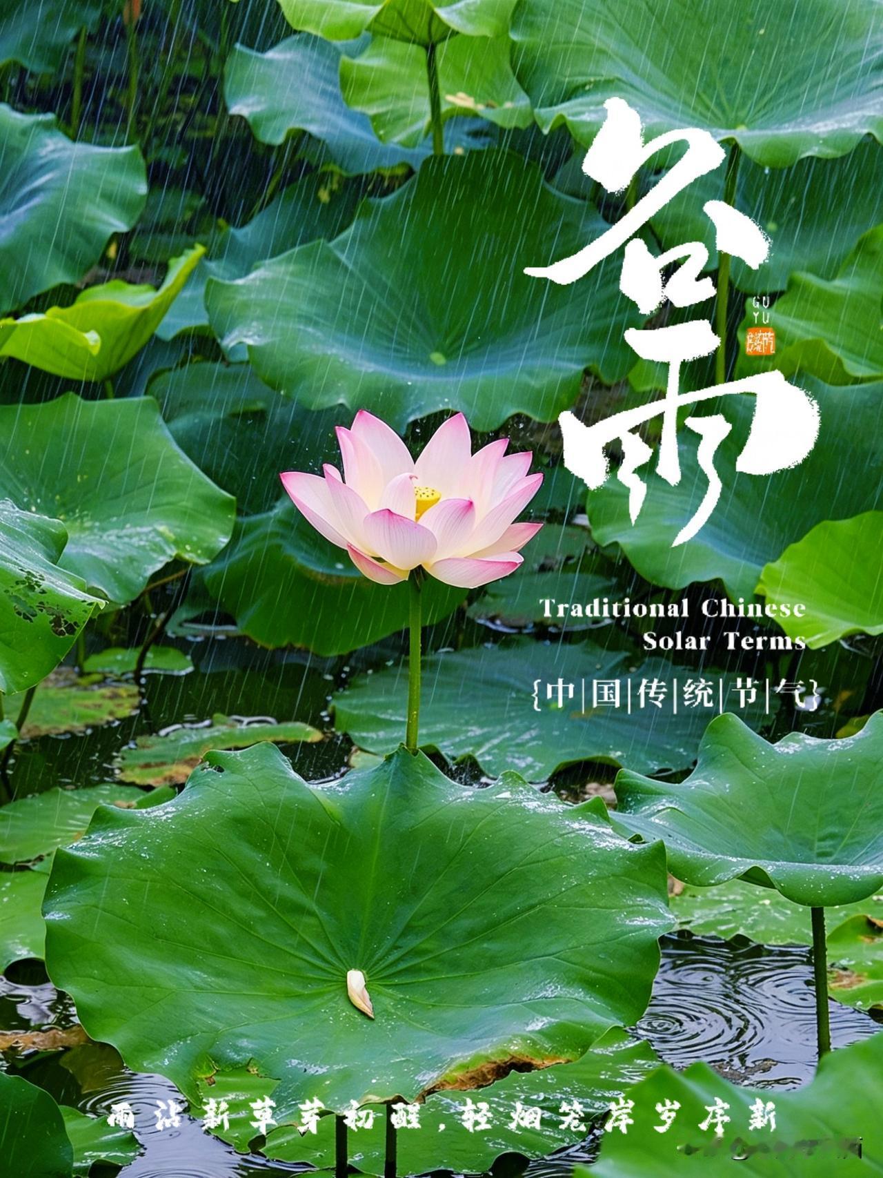 雨落桉庭 谷雨之际,雨洒古园。青石阶上,雨珠莹润;蕉叶之上,翠意欲滴。竹林之中,水珠簌簌而落;听雨落荷塘 荷塘之内,粉荷袅袅婷婷。