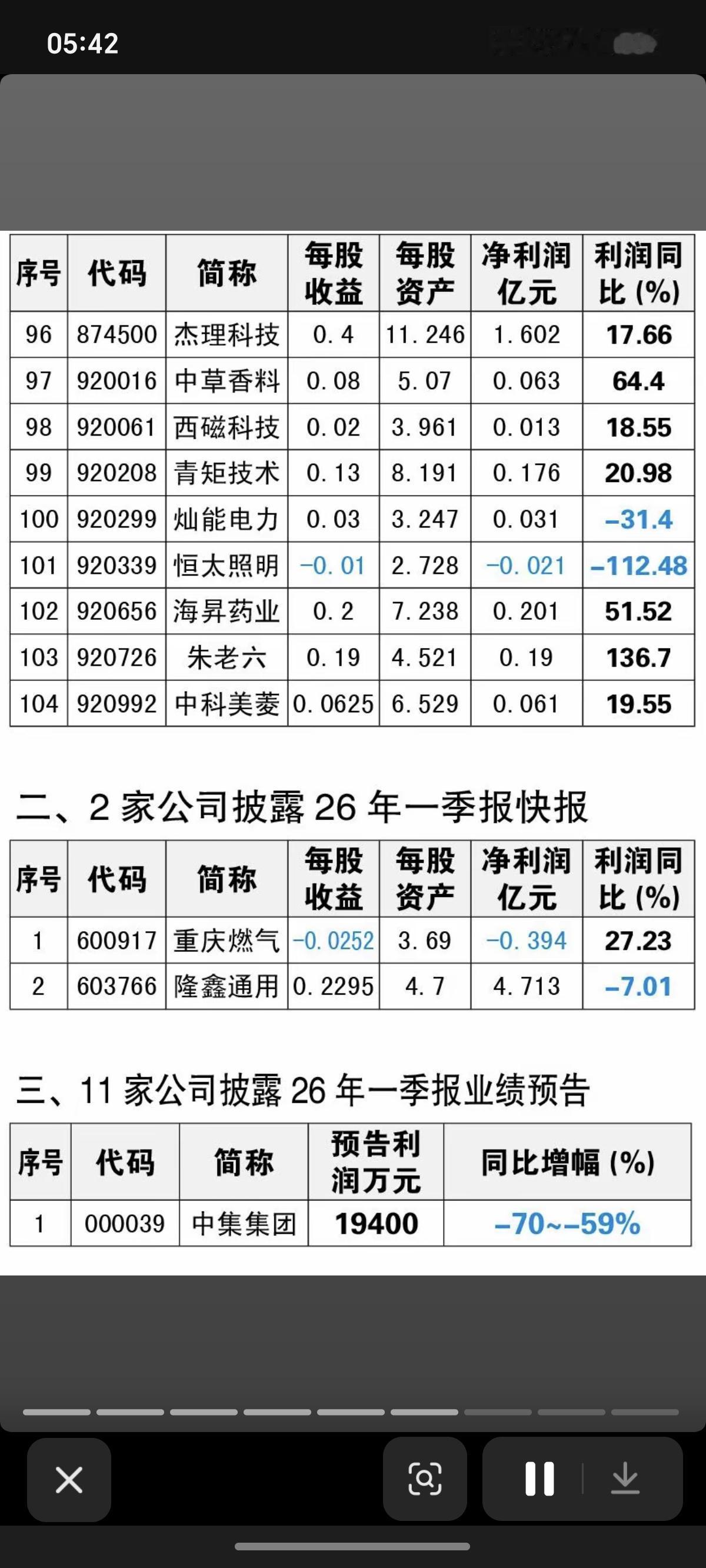 4.20周一 26年一季报业绩速递! 106家公司披露一季报业绩 11家公司