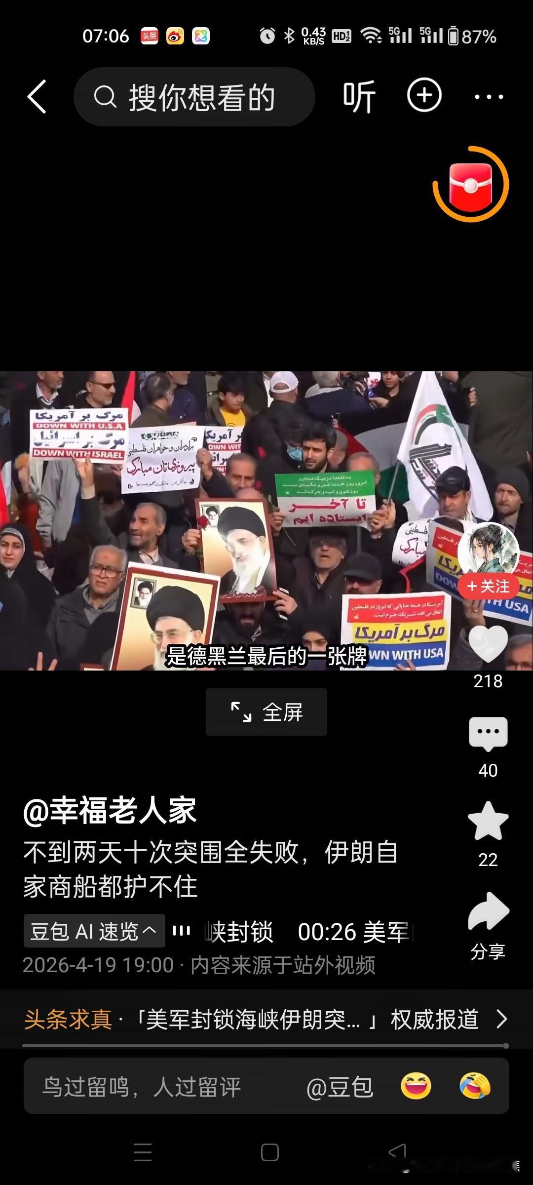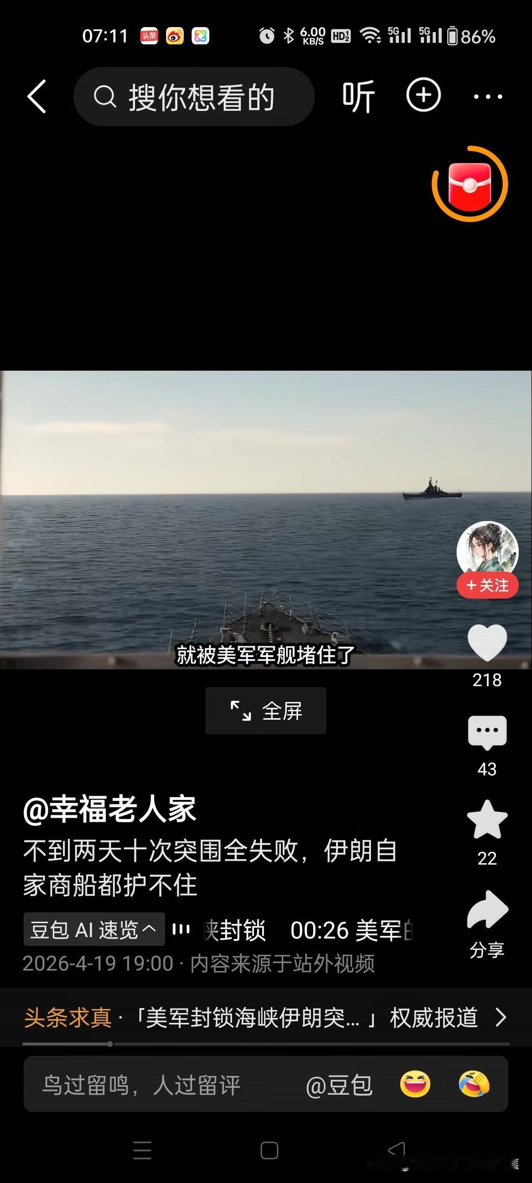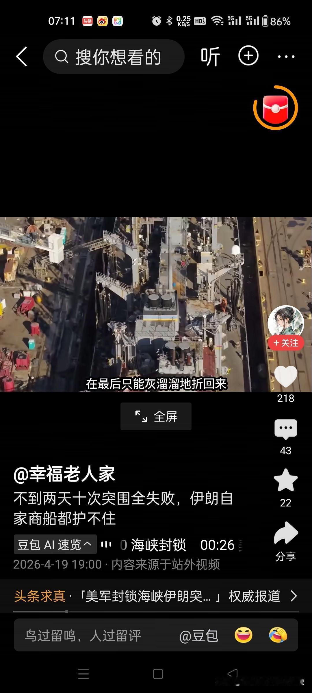 海峡:伊朗开放民用航运,美国解除全面封锁。