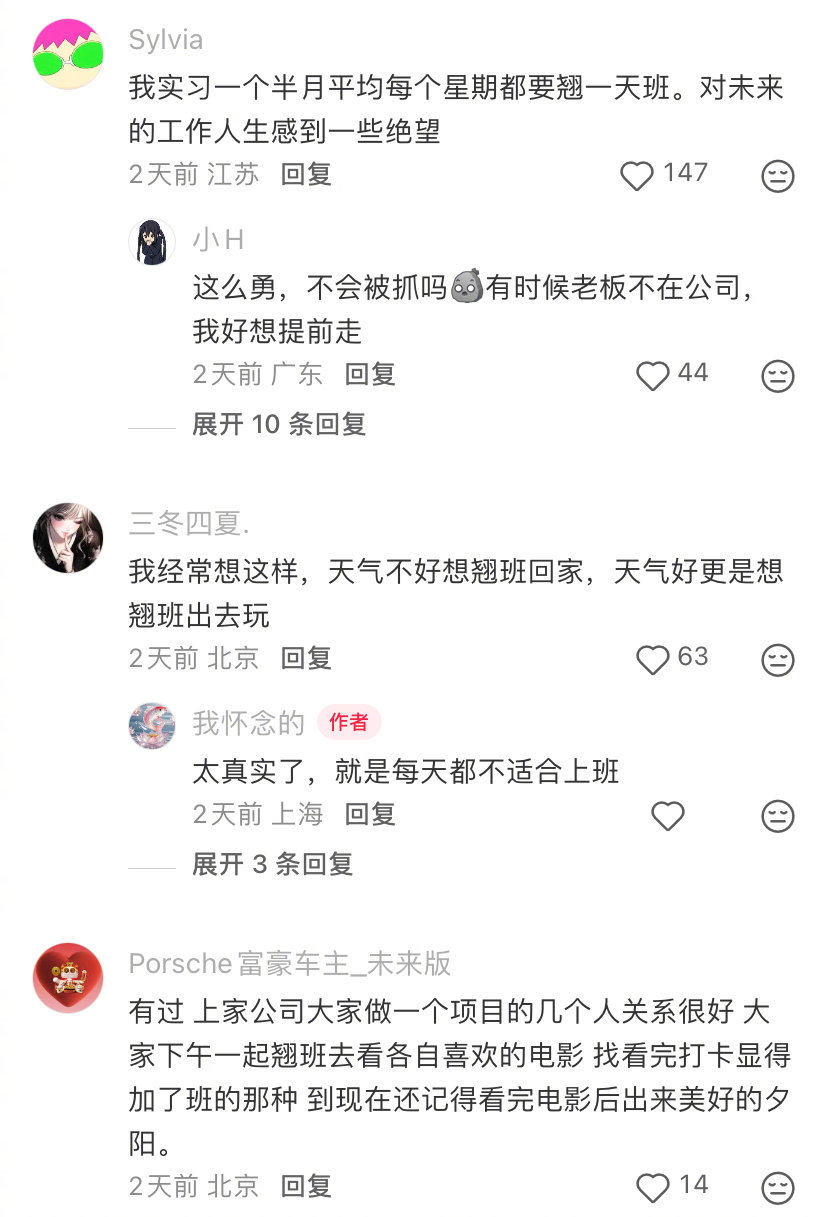 上班途中想像大学翘课一样翘班