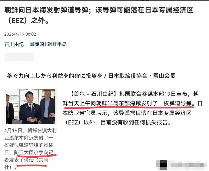 日本军舰刚刚挑衅性的,经过了台湾海峡,朝鲜直接朝着,日本经济海域方向,发射了导弹。朝鲜可不惯着,直接导弹伺候,让日本国内民众慌乱。可以说,朝鲜真是太硬气专治小日本的各种不服。