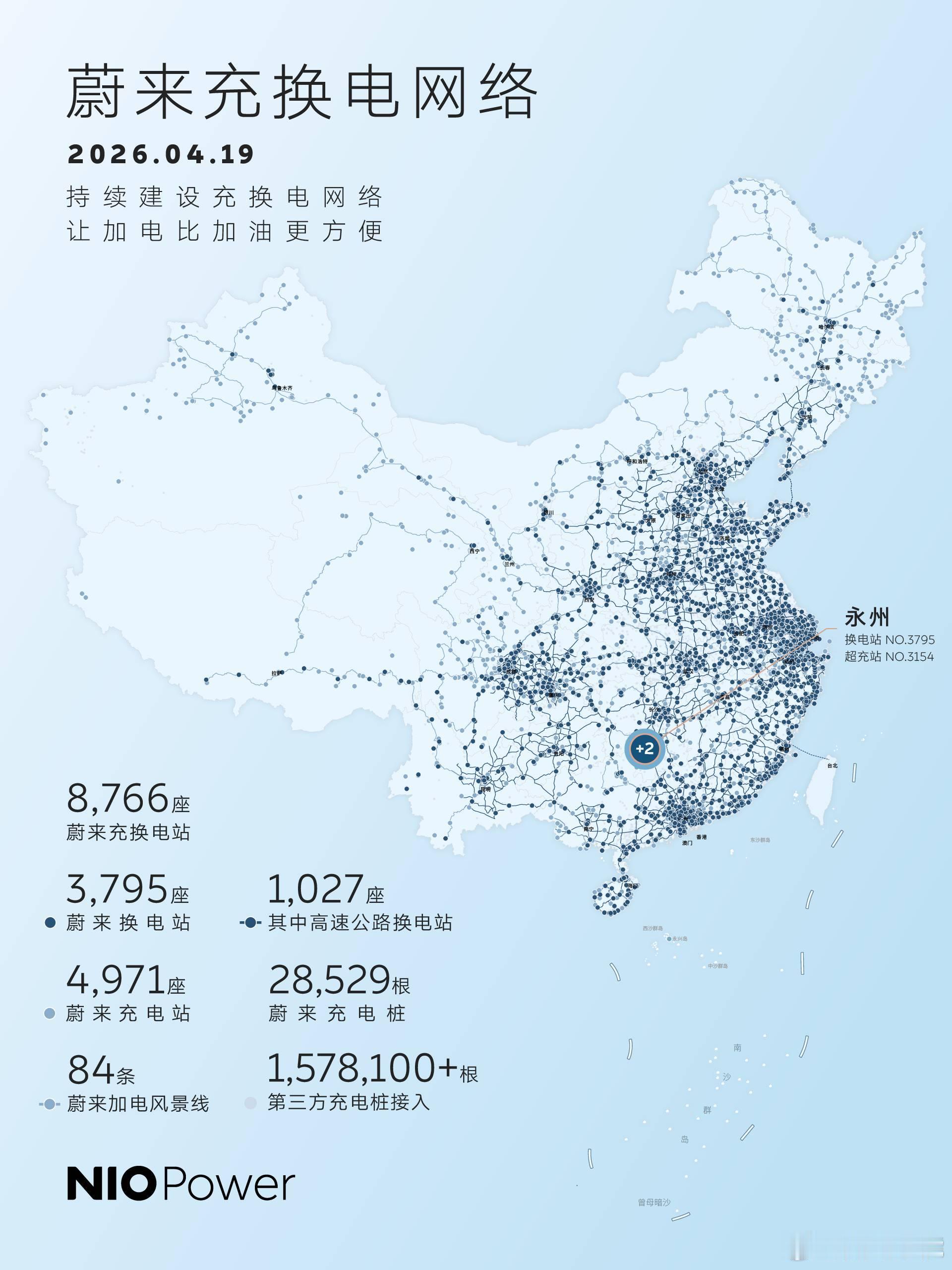 4月19日,NIO Power 2站上线NO.3795 蔚来换电站 | 永州零陵潇湘汽车城NO.3154 蔚来超充站 | 永州零陵潇湘汽车城持续布局-让加电比加油更方便
