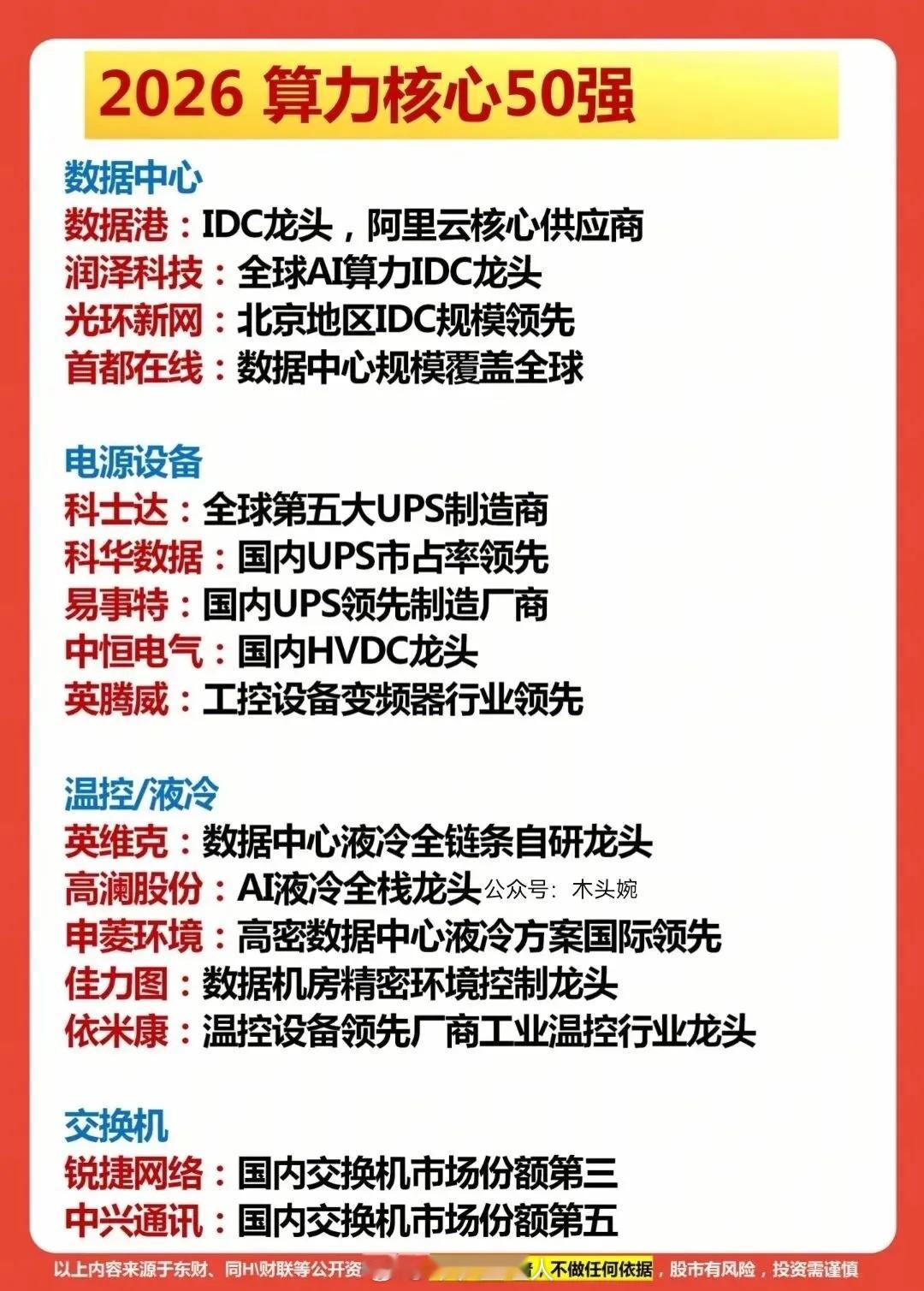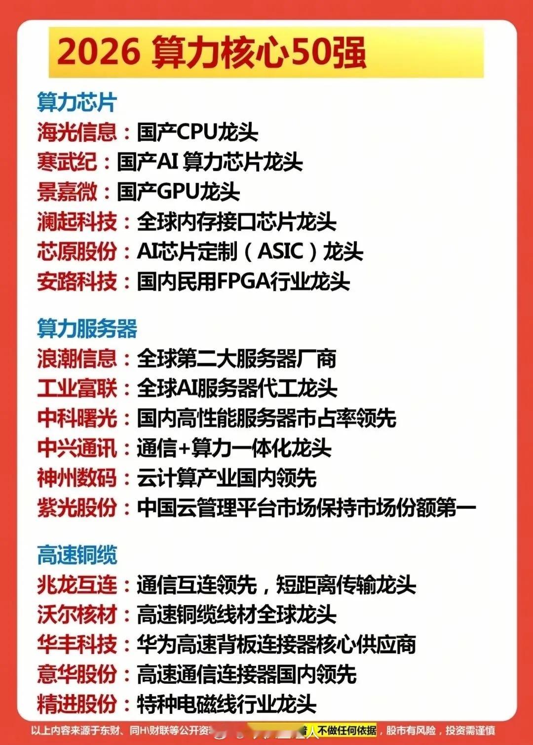 算力,AI时代的“新基建心脏”!算力主线行情风起云涌,这篇2026算力核心50强名单,直接把光模块、算力芯片、服务器、数据中心等全产业链龙头一网打尽,值得收藏!