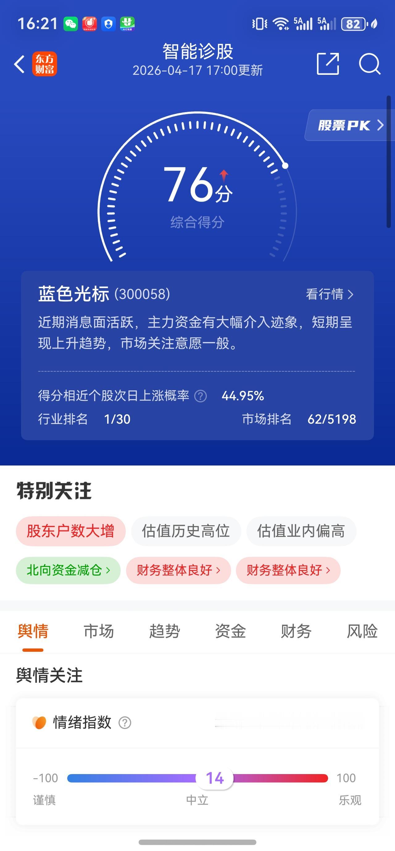 ③ 主力资金面:东方财富"千股千评"指出,近期消息面活跃,主力资金有大幅介入迹象,短期呈现上升趋势。此前4月8日,该股曾出现20cm涨停,龙虎榜合计净买入达14.1亿元,其中国泰海通证券上海浦东新区海阳西路营业部、深股通专用分别净买入7.39亿元、5.19亿元。