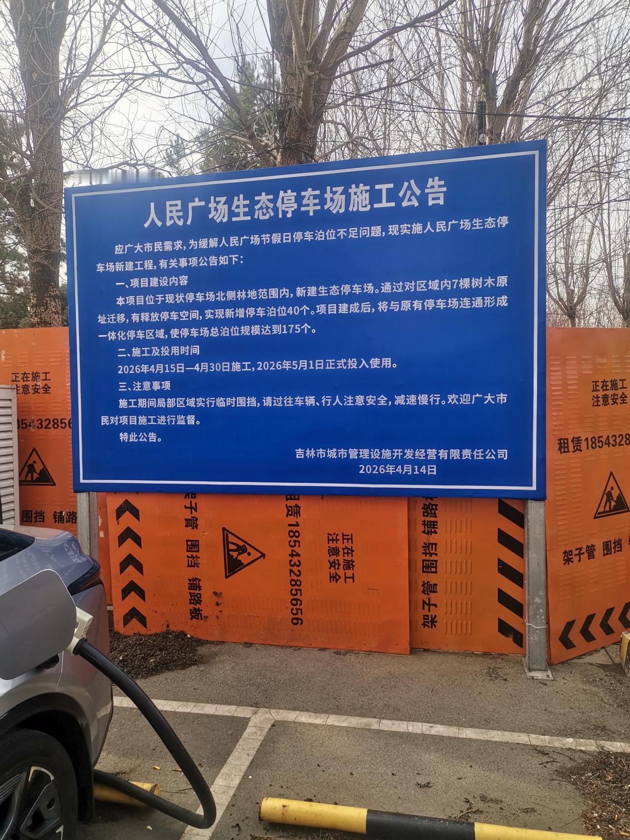此次停车场扩建能满足更多停车需求,让市民和游客游玩时不再为停车发愁。工程于4月15日开工,预计4月30日竣工,以迎接五一假期的客流高峰。工程告示牌明确显示,移走原有树木后可增加40个停车位。虽然数量不算多,但有总比没有好。