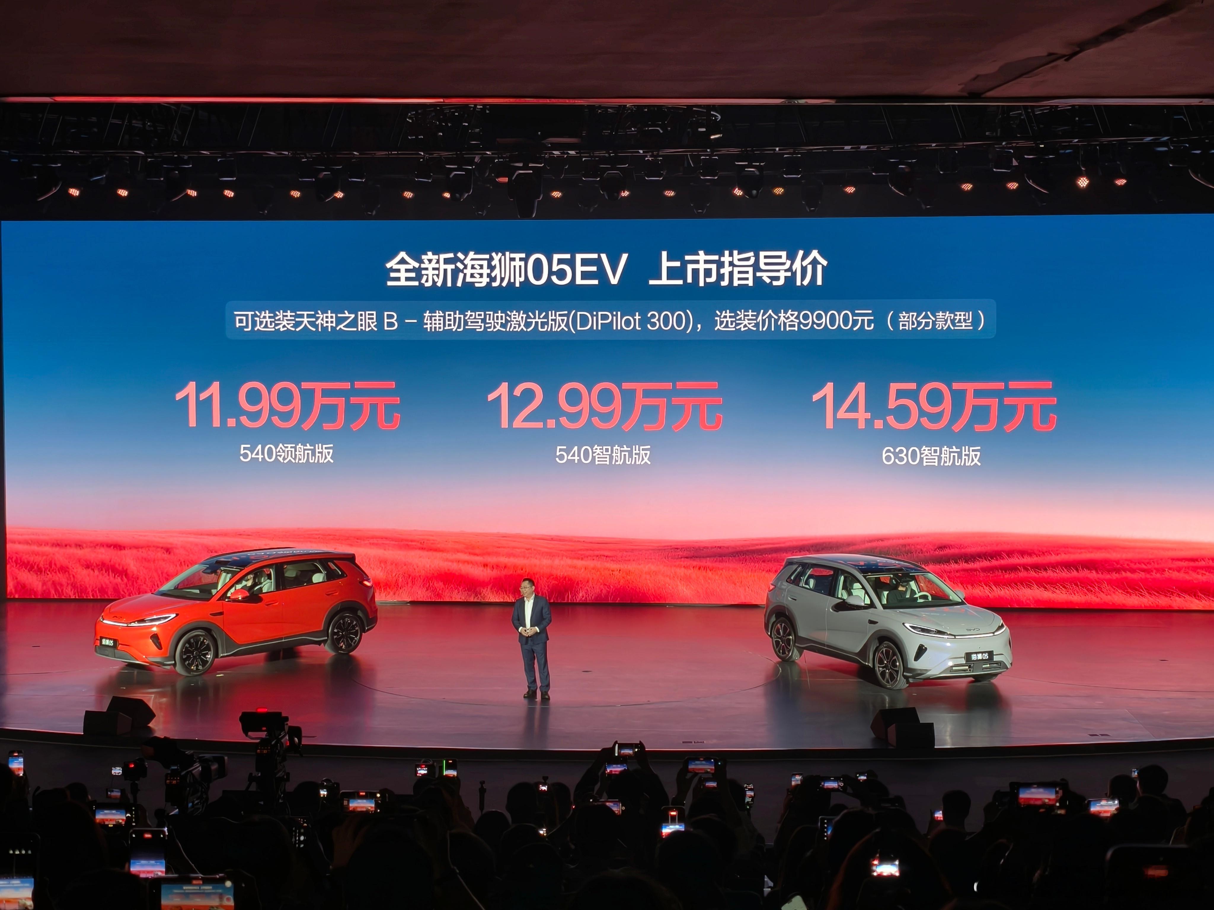 比亚迪海狮05双车上市 4月20日,比亚迪2026款海狮05EV与海狮05DM-i正式上市,海狮05EV指导价11.99-14.59万元,海狮05DM-i指导价9.79-12.79万元。双车在外观、尺寸、动力及智驾方面均进行年度改款升级。新车划重点
