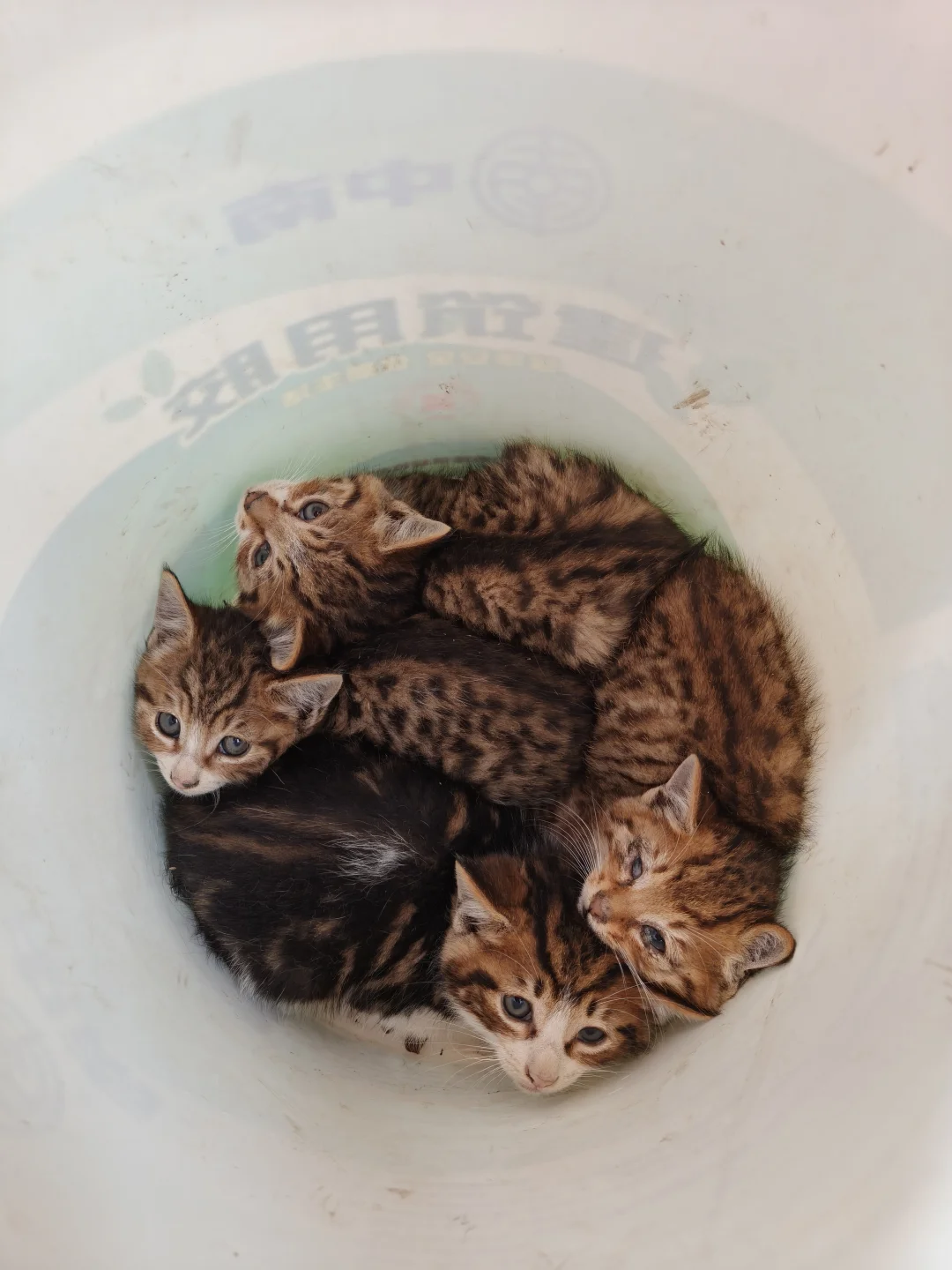 一共五只 现因仓库不给小猫生存已被丢在校园里