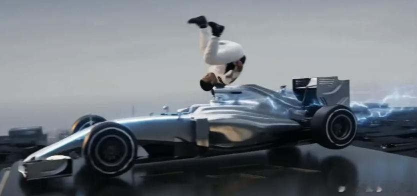 图7 致敬尚格云顿劈叉沃尔沃,从荒诞度上可能较画面34同样没有明显升级,不过编排者可能认为这个画面更容易让观众发出“卧槽”与情感高潮,觉得这个画面适合做第二段结尾,当这样决定时,歌词配主动悬架和线控底盘会更合适。